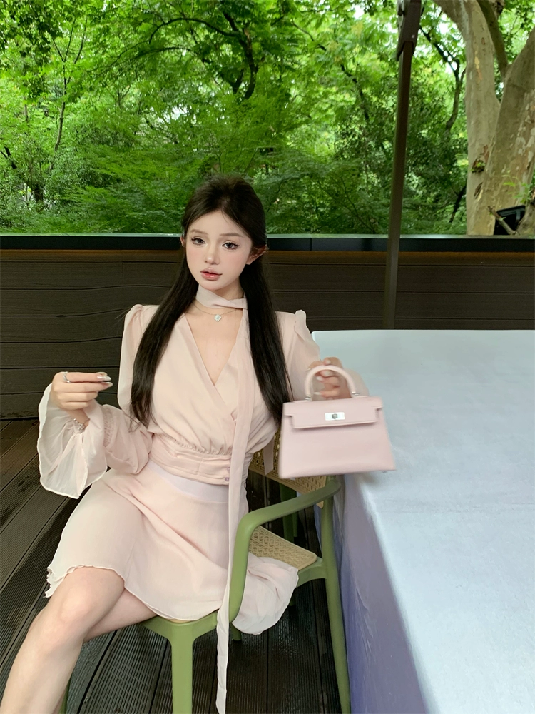 | nameOriginal | Salt style light mature wind ribbon two-piece long-sleeved shirt |