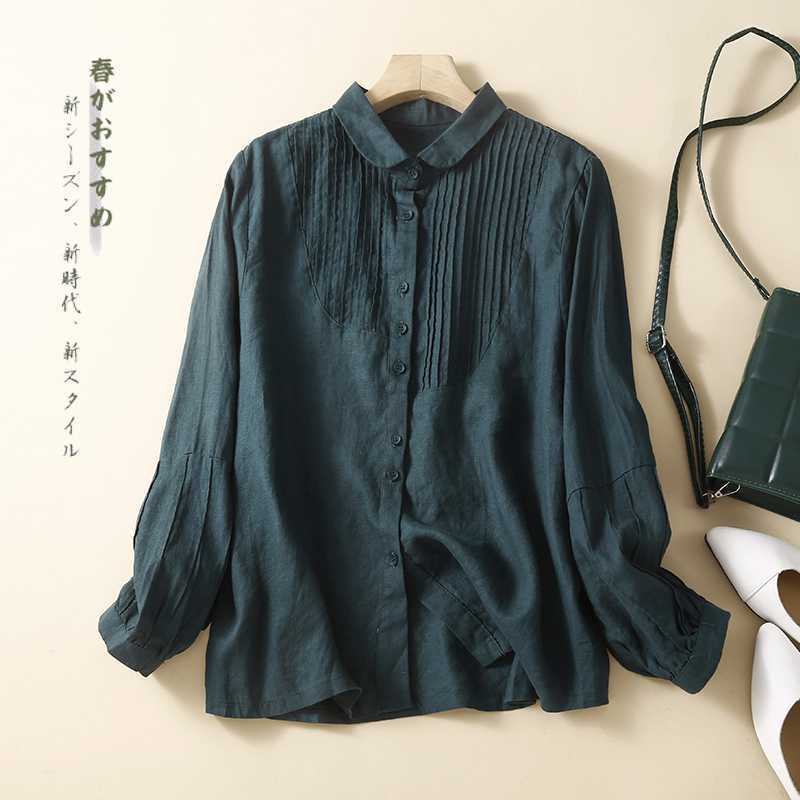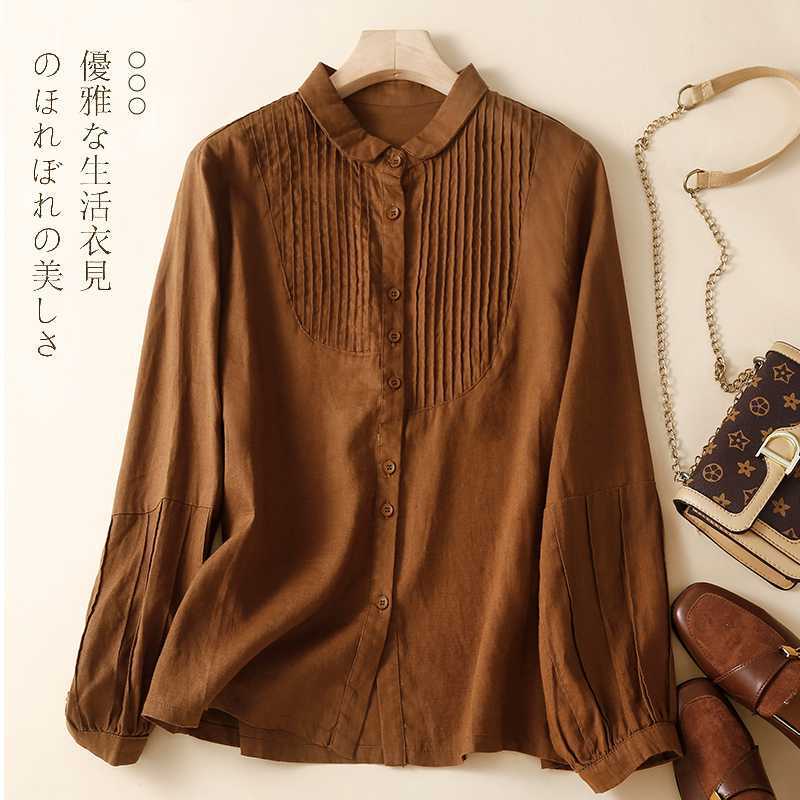 | nameOriginal | Salt Style Linen Shirt Women's Artistic Retro Hong Kong Style All-match Cotton and Linen Top Piano Pleated Shirt Women's 2024 Autumn New Arrival |