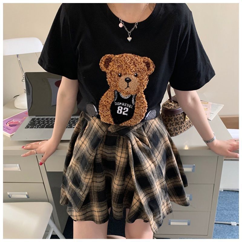 | nameOriginal | Salt Sweet suit Women's Summer Fashion Western Style Bear Top Ruffled Plaid Skirt Fried Street Skirt Two-piece Set |