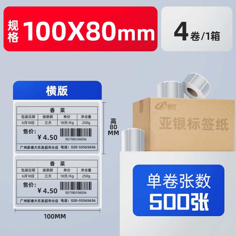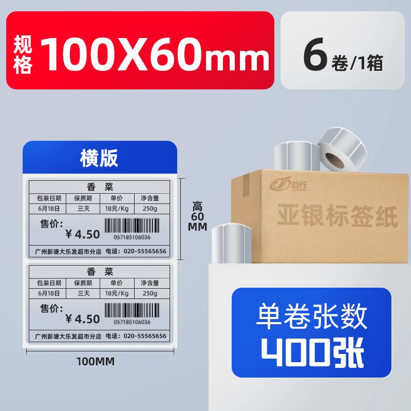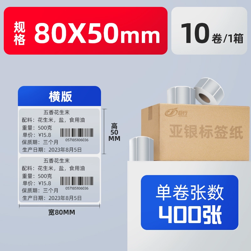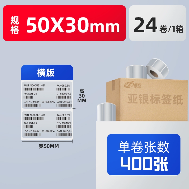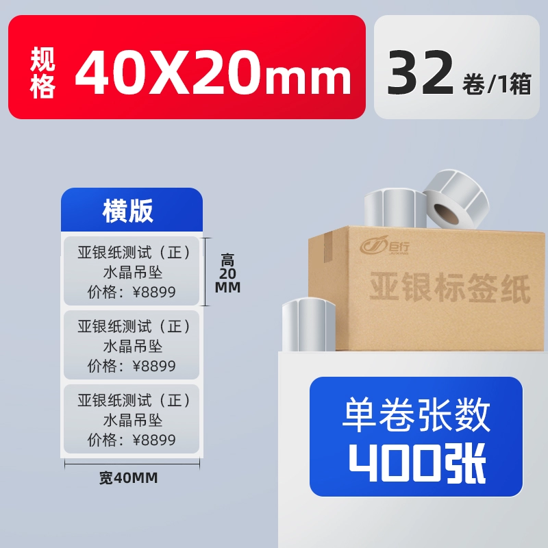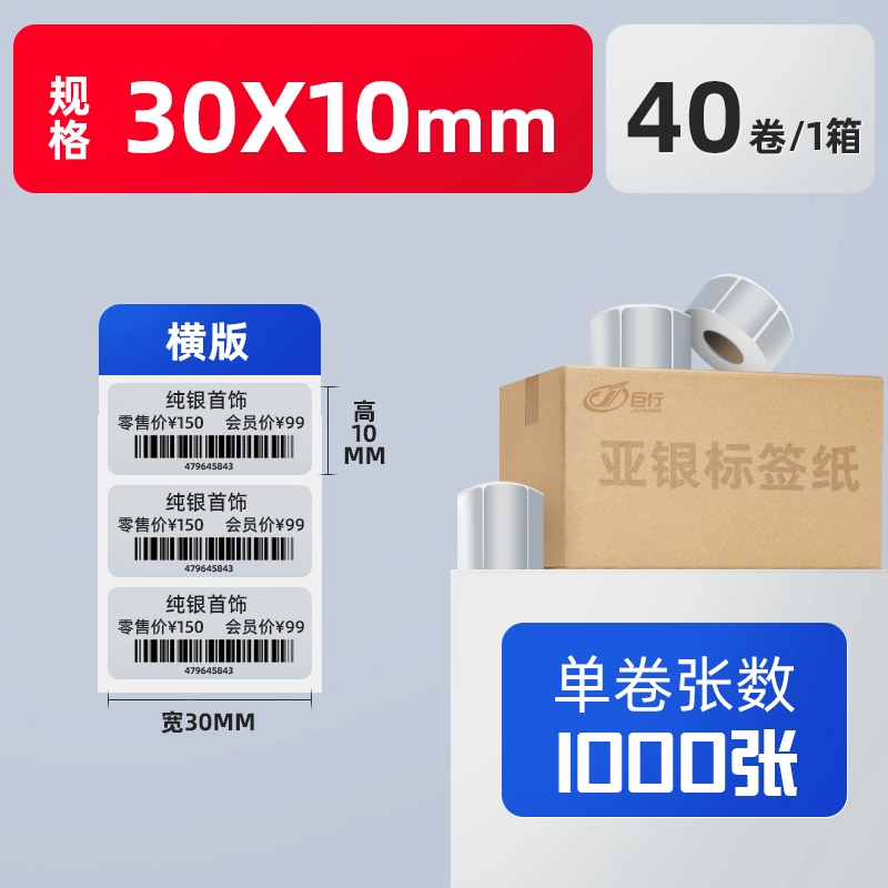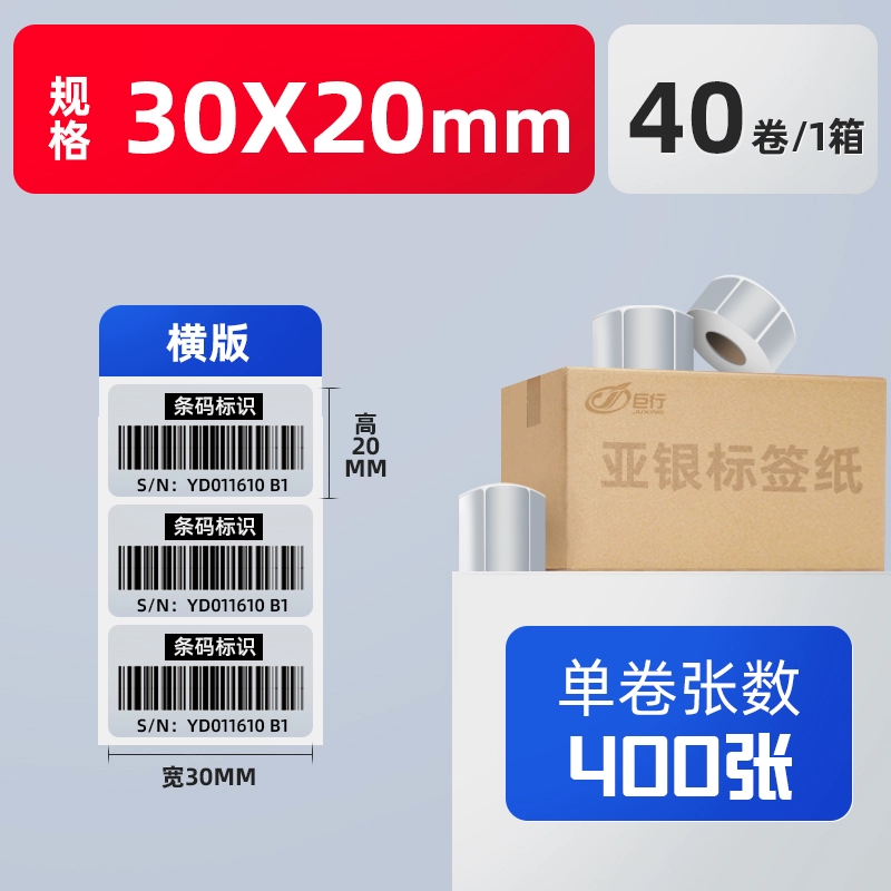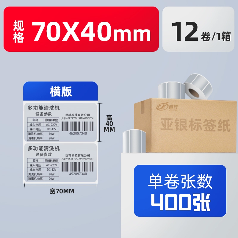 | nameOriginal | [Same day delivery] Juhang dumb silver label paper 30*20 40*30 50*40 60*40 80*50 Yayin PET barcode paper waterproof and scratch-resistant paper can not be torn high temperature electrical appliances fixed assets |