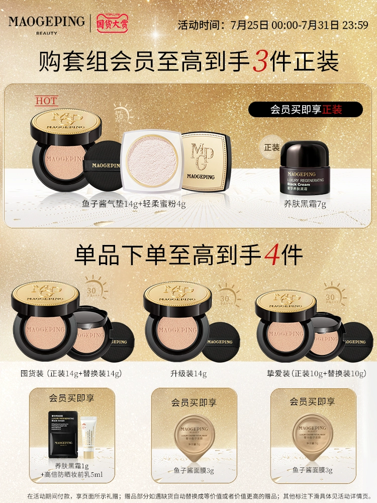 | nameOriginal | [Same style as Chen Lijun] Mao Geping Luxurious Caviar Flawless Cushion Foundation is moisturizing and nourishing, and it is not easy to remove makeup. |