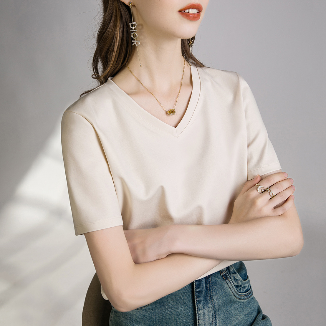 | nameOriginal | (Same style as shopping mall) heavy brand texture short-sleeved T-shirt women's liquid ammonia mercerized cotton 2024 new summer top |