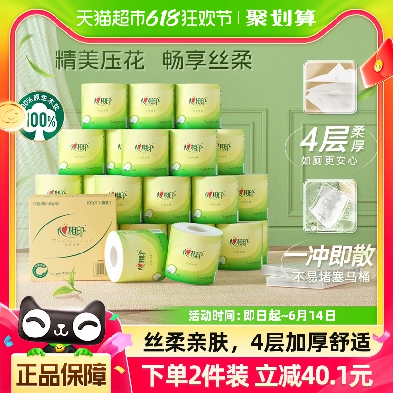 | nameOriginal | [Same style as Xiao Zhan] Heart to Heart Tea Language 4 layers 140g 27 rolls toilet paper toilet paper household toilet paper |
