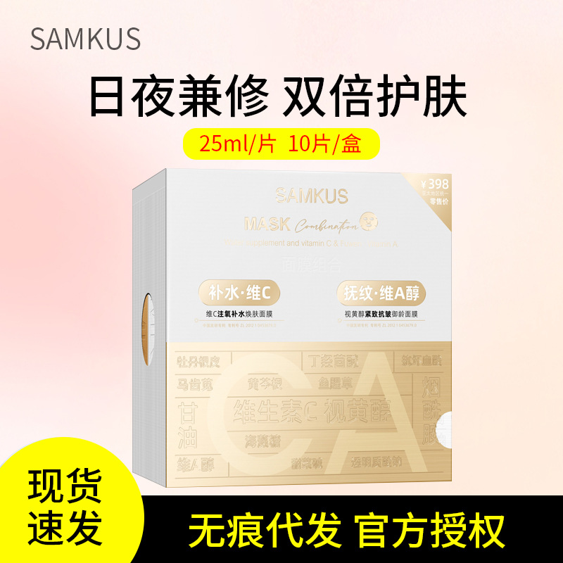 | nameOriginal | SAMKUS Morning C Evening A Mask Vitamin C Oxygen Infusion Hydrating and Rejuvenating Mask Retinol Firming Anti-Wrinkle Royal Age Mask |