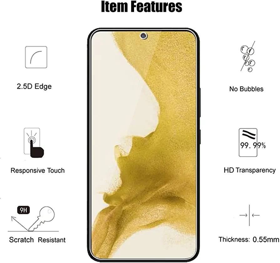 | nameOriginal | (3+3) For Samsung Galaxy S22 5G (6.1") 3 Pack Tempered Glass Screen Protector and 3 Pack Camera Lens Protector, Fingerprint Unlock, 9H Hardness, 2.5D, Anti Scratch, HD Clear |