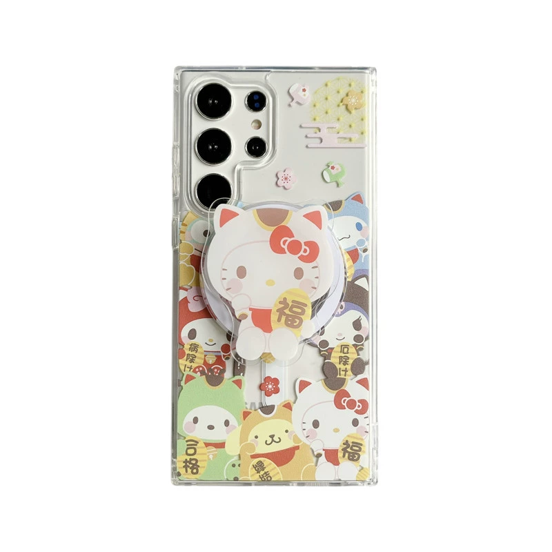 Suitable for Samsung S22ULTRA/S23/S23ULTRA/S24/S24ultra mobile phone case Magsafe magnetic stent transparent protective cover, a new year recruitment of blessing jade, KT cat mermaid Hanson