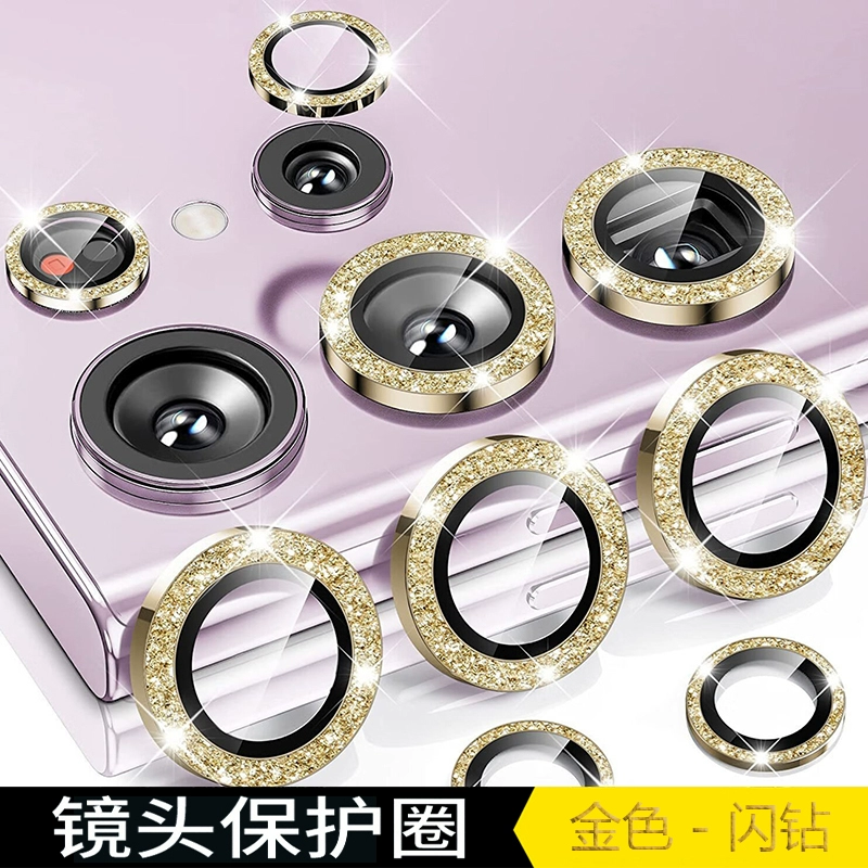 Samsung SAMSUNG Galaxy S24+/S23 Ultra/S22 Ultra mobile phone tempered lens flashing film ring integrated camera protection anti-fall and anti-scratch HD lens ring flashing diamond