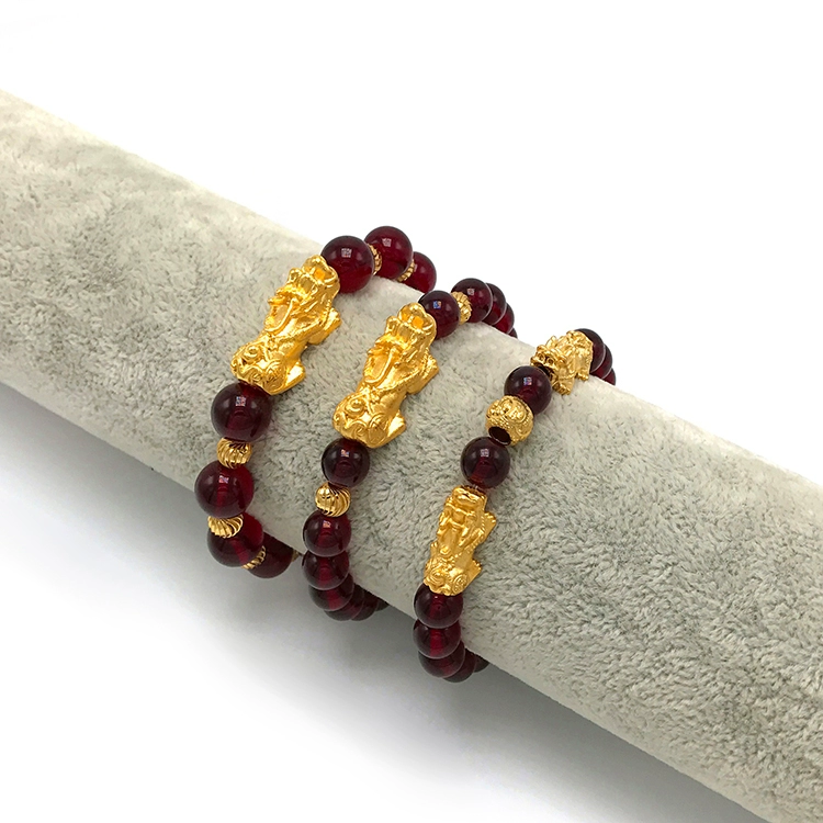 Sand gold Pixiu bracelet single circle natural wine red garnet bracelet for men and women to attract wealth Vietnamese gold Piqiu will not fade for a long time
