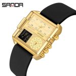 Sanda cross-border popular square large dial cool watch three movement Men’s sports electronic watch business watch men