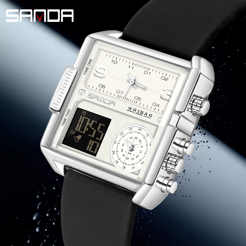Sanda cross-border popular square large dial cool watch three movement Men's sports electronic watch business watch men
