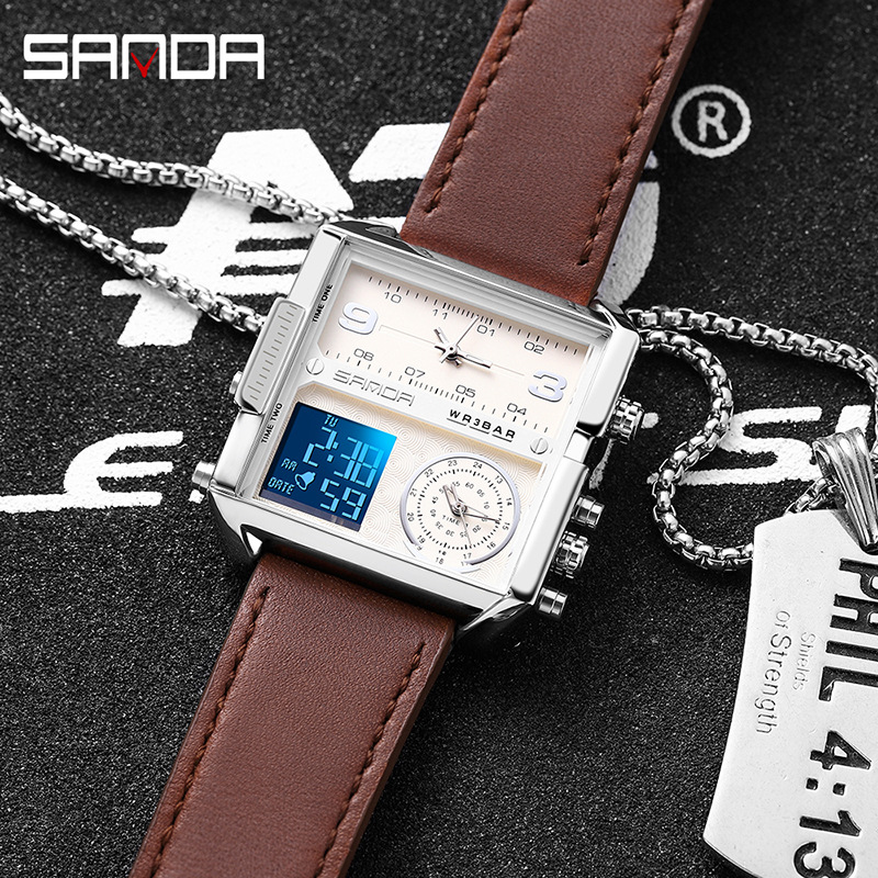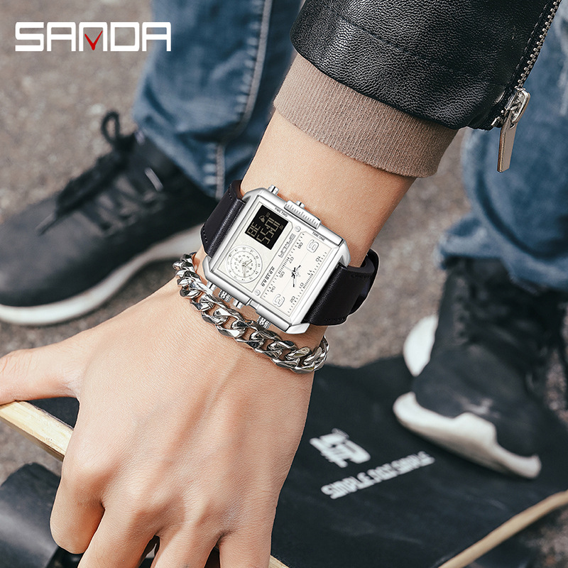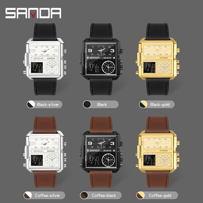 Sanda men’s business watch personality three movement watch waterproof shockproof outdoor men’s multi-functional square watch