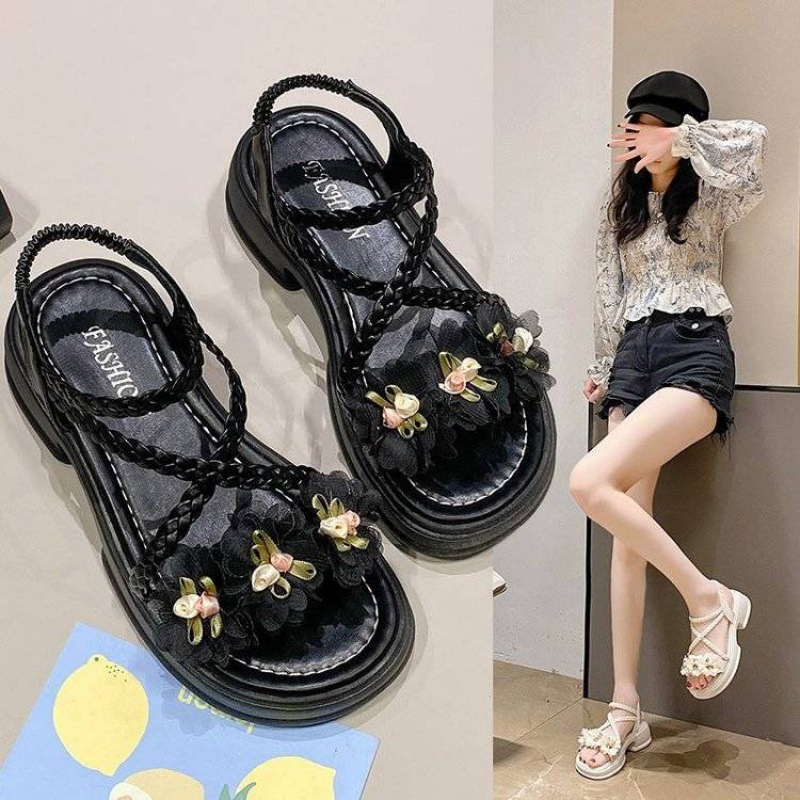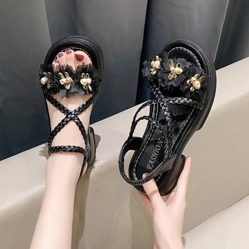 | nameOriginal | Sandals 2024 New Women's Summer Thick Heel Pearl Flower Girl's Fresh Style with Skirt chic Beach Roman Shoes |