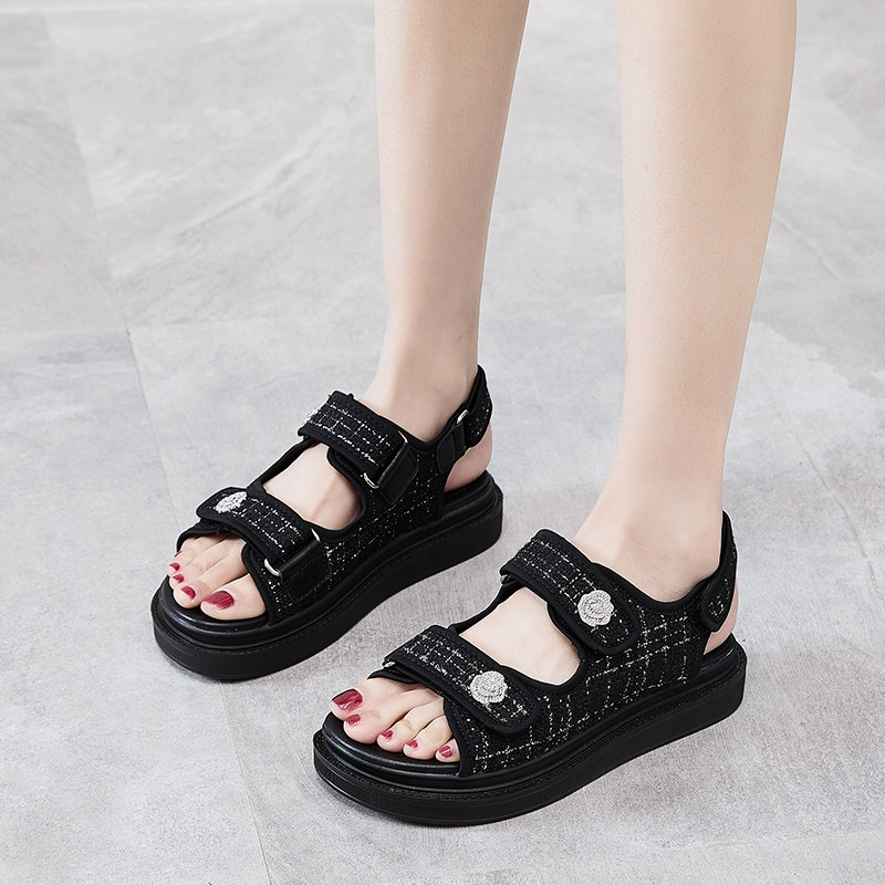 | nameOriginal | Sandals for women 2024 new summer ins trend versatile small fragrance Velcro beach shoes students thick-soled flat shoes |
