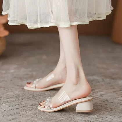 | nameOriginal | Sandals for women, summer thick heel, transparent flip-flops for external wear, tight high-heeled sandals, wide fat feet, large size women's shoes 41 to 43 |