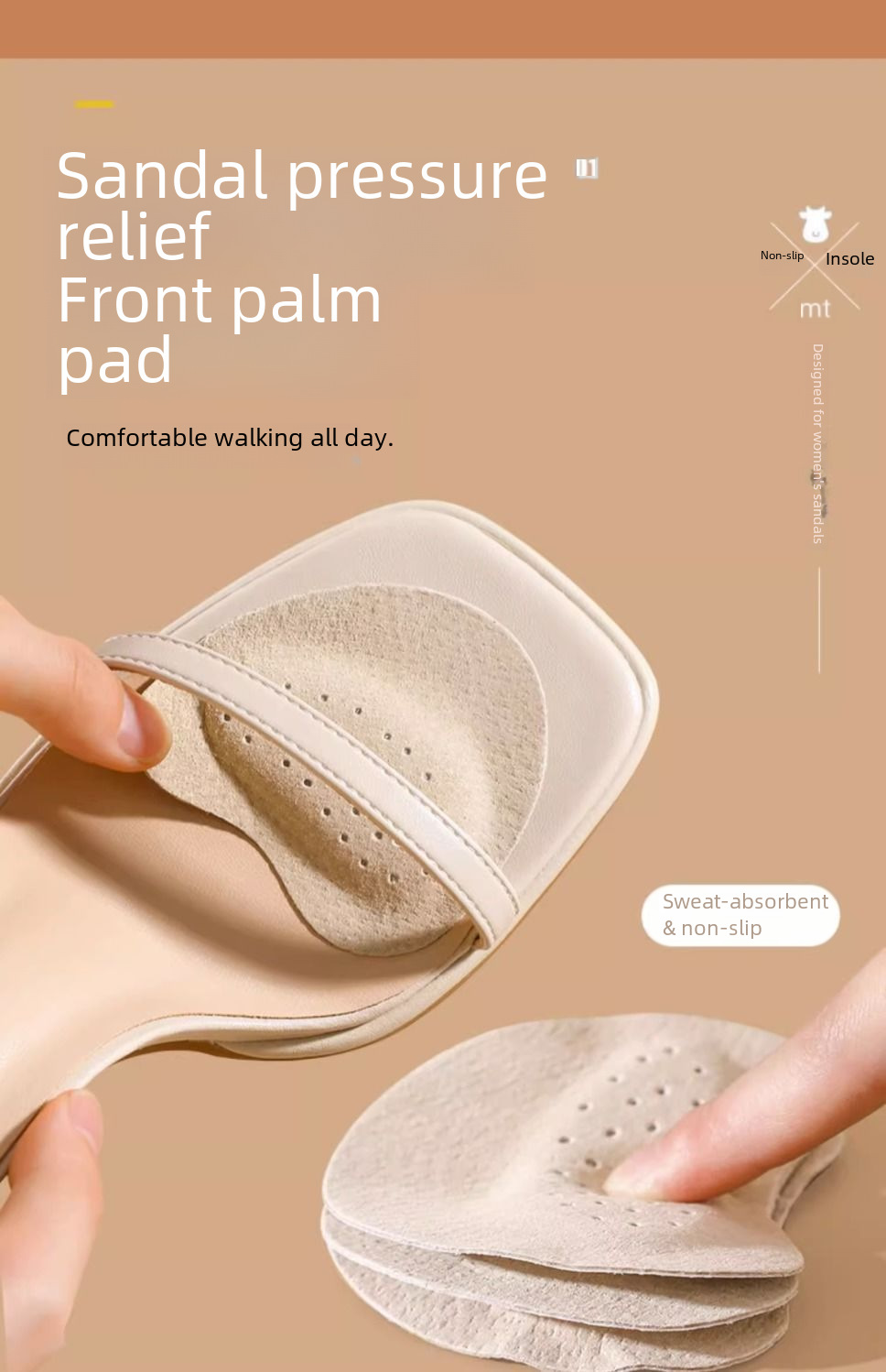 | nameOriginal | Sandals non-slip stickers women's high heel shoes front palm pad anti-pain sweat-absorbing non-slip size-reducing self-adhesive cowhide half size pad |
