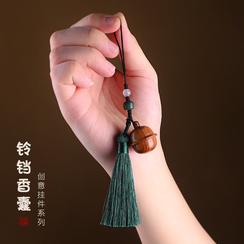 Sandalwood Bell Sachet Car Keychain Pendant for Men and Women Mobile Phone Hanging Jewelry Key Chain Portable Aromatherapy
