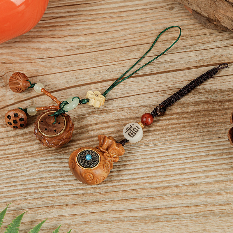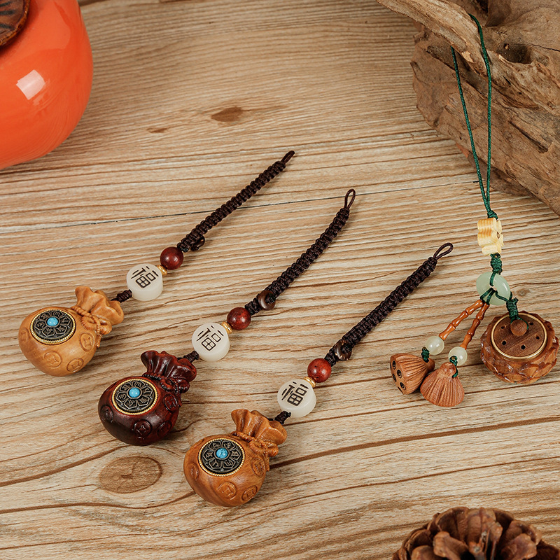 | nameOriginal | Sandalwood to Qian Fu Bag Car Keychain Creative Men's and Women's Couple Money Bag Mobile Phone Bag Pendant Accessories Jewelry |