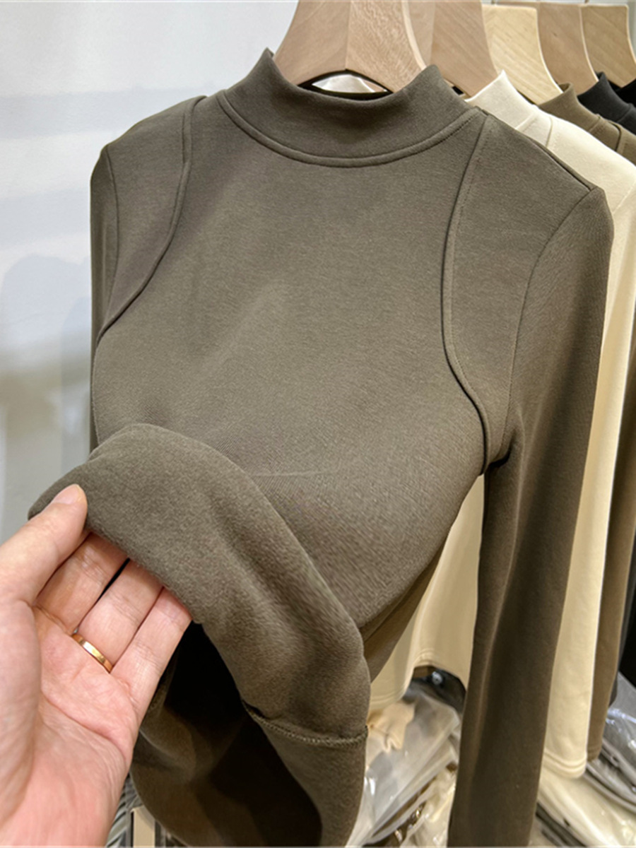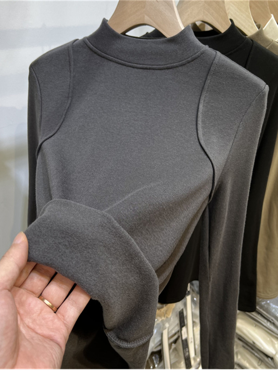 | nameOriginal | Sanding Warm High Elastic Line-feeling Half-high Collar Long Sleeve Base Shirt Autumn and Winter New Skin-friendly All-match Top T-shirt Women |