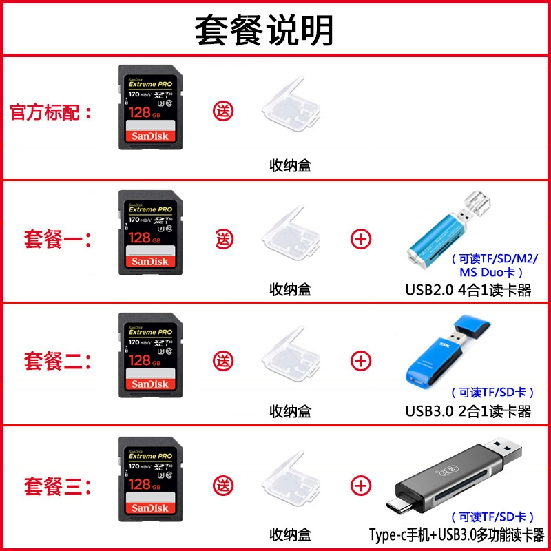 SanDisk 128g large card SD card SLR high-speed camera memory card camera memory card official genuine 4K micro single
