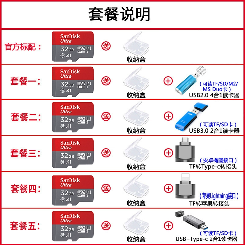 | nameOriginal | Sandisk SanDisk TF memory card 32G memory card C10 MicroSD high-speed mobile phone TF card 120M/S |