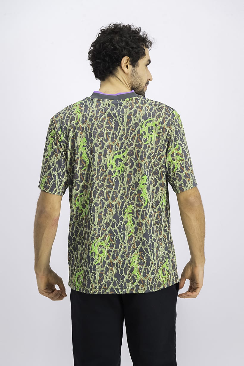 Occasion : Sport, Care : Machine washable, Type of Sport : Training, Fabrics : 100% Polyester, Ideal For : Men, Pattern & Print : Allover print, Color Family : Green, Sportswear Type : T-Shirt, Type of Neckline & Collar : V-neckline , Type of Hem : Straight hem , Type of Sleeve : Short sleeve , Types of Closures : Pullover,