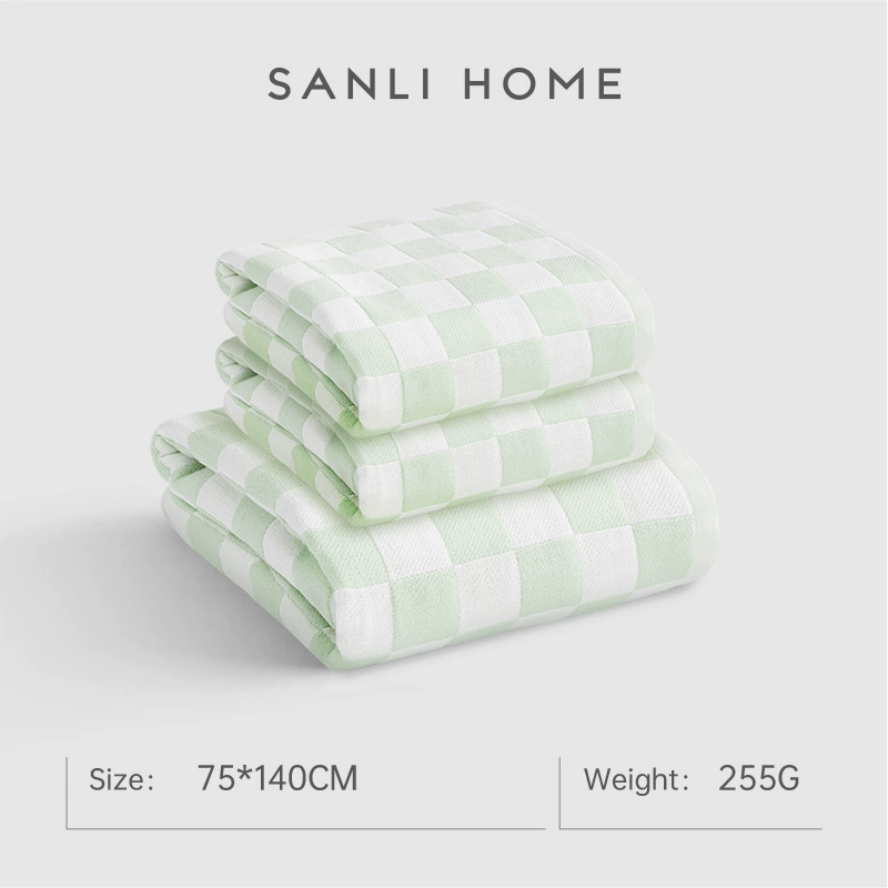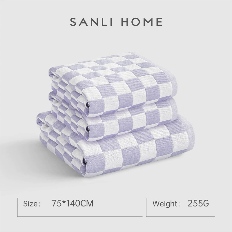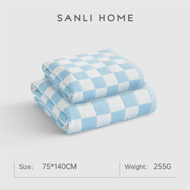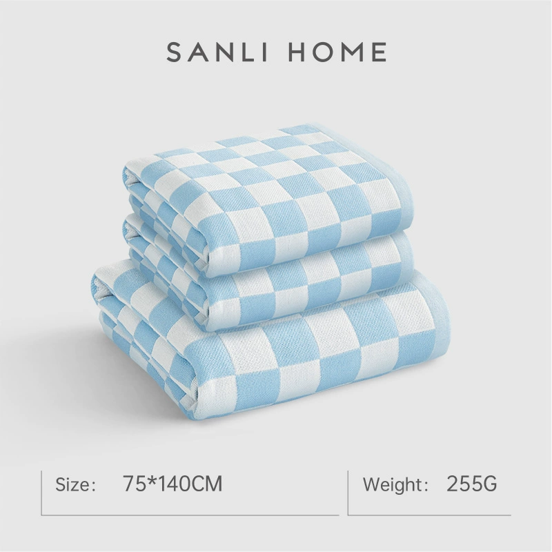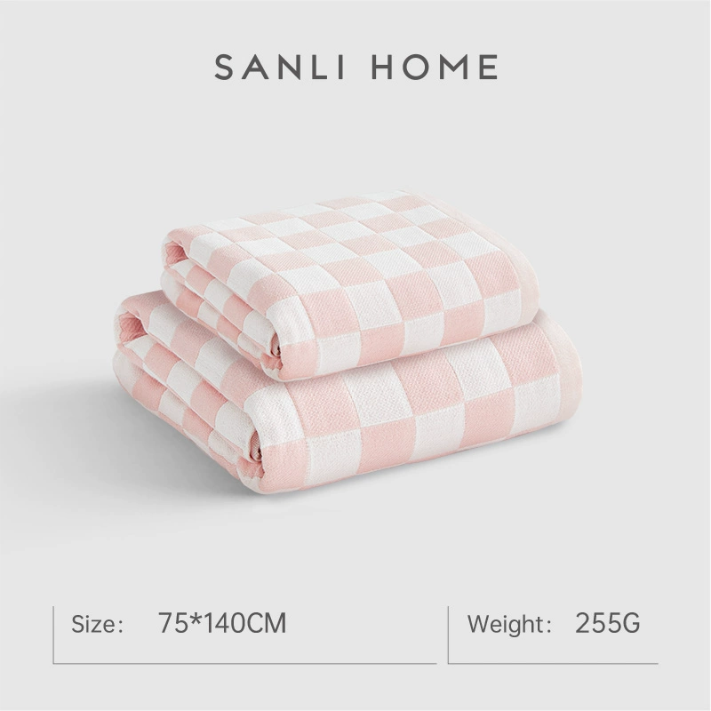 Sanli checkerboard cotton quick-drying gauze bath towel for women