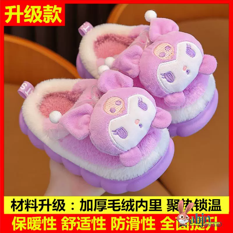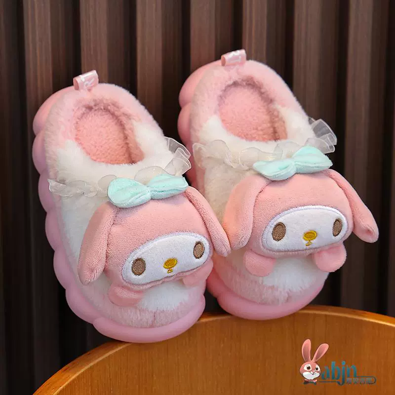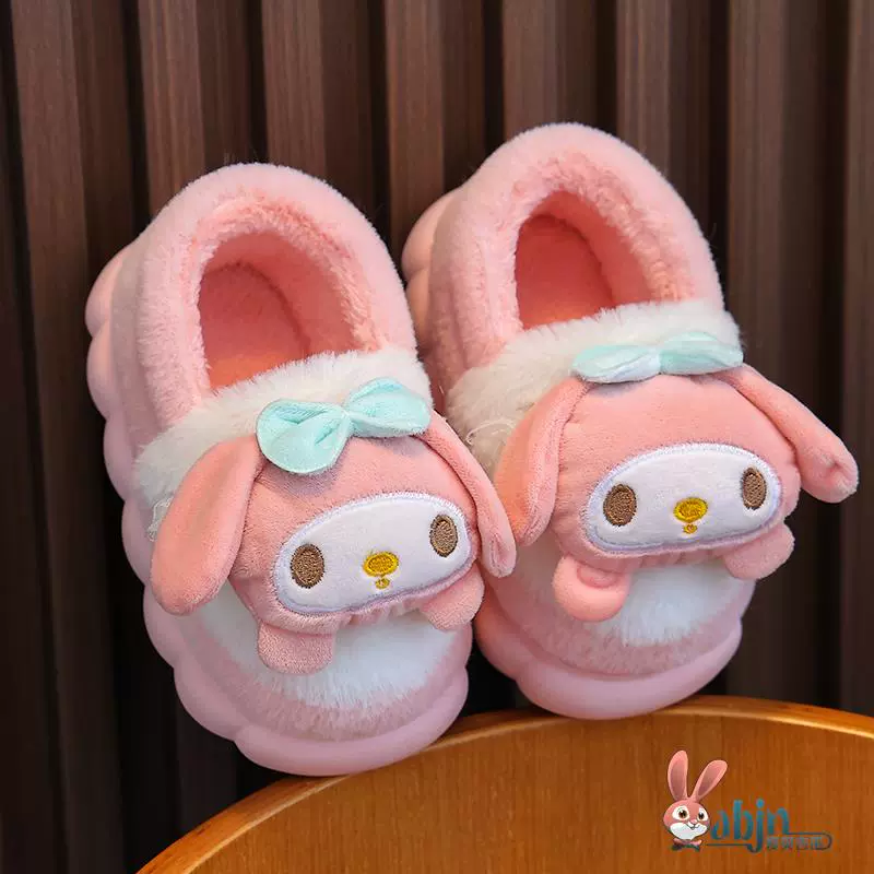 Sanrio children's cotton slippers autumn and winter girls' cute indoor bag with princess big-eared dog parent-child plush slippers for men