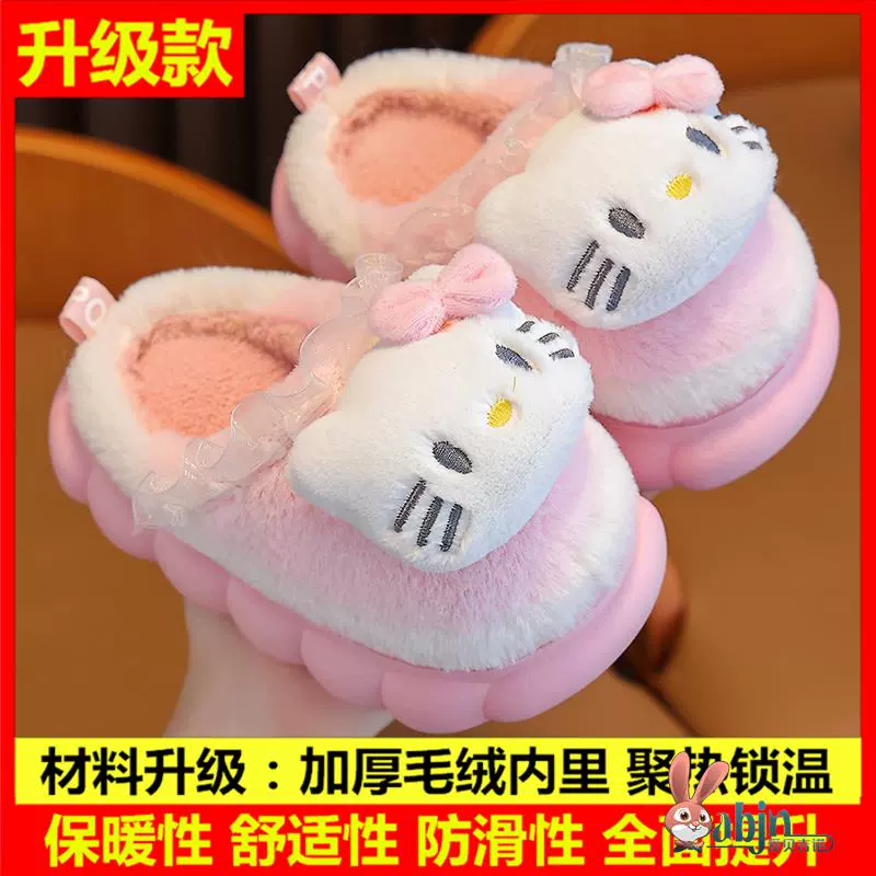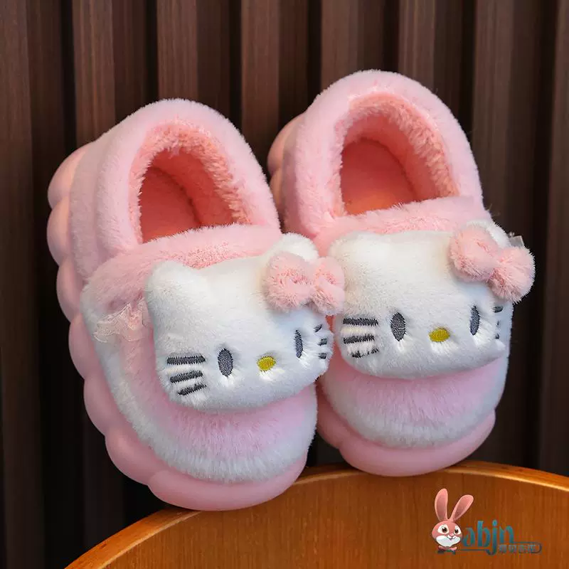 Sanrio children’s cotton slippers autumn and winter girls’ cute indoor bag with princess big-eared dog parent-child plush slippers for men