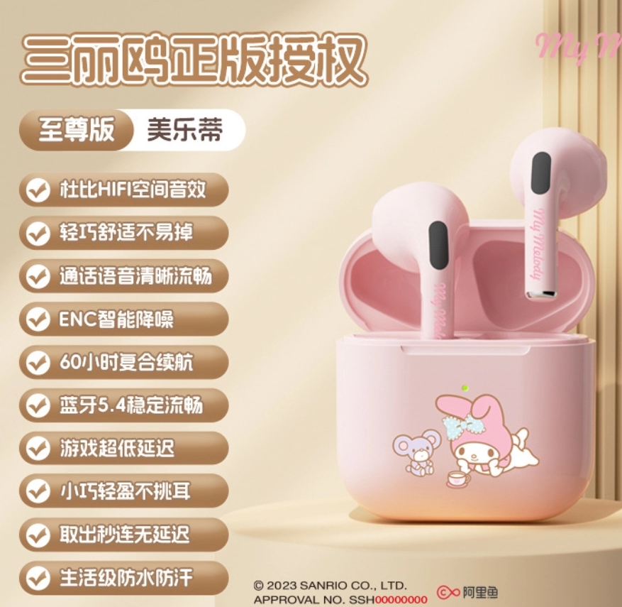 | nameOriginal | Sanrio co-branded true wireless Bluetooth headset cute cartoon student gift compact noise-cancelling mobile phone universal headset |