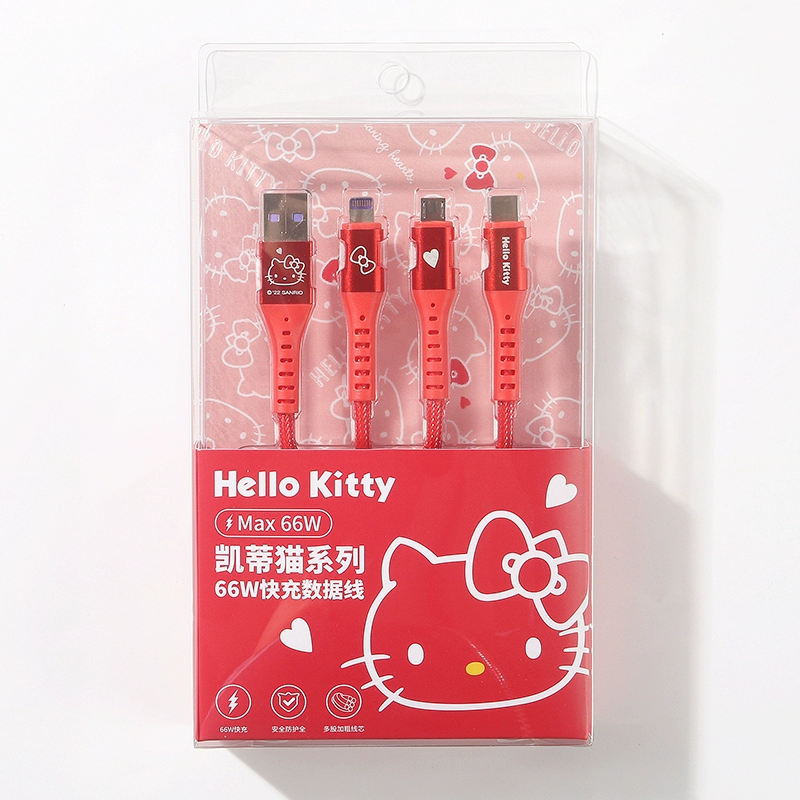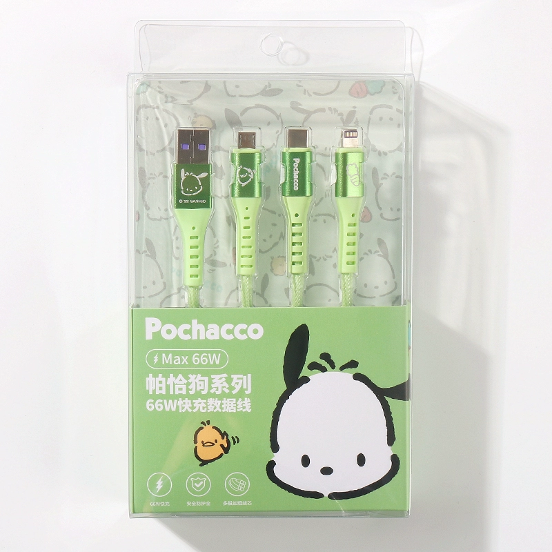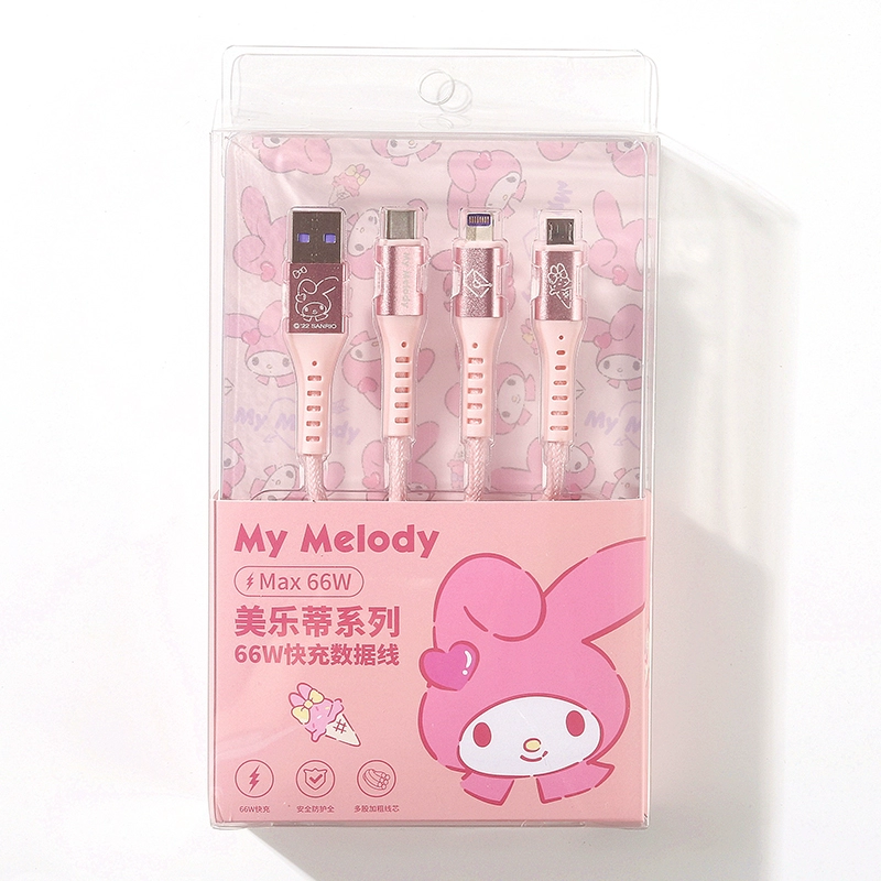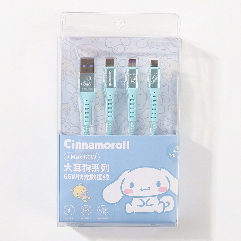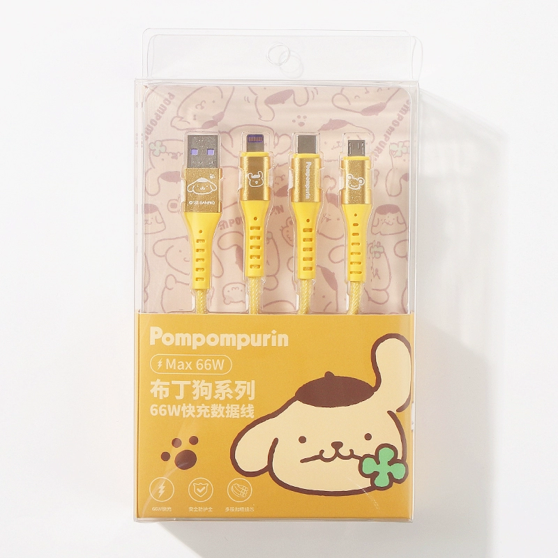 | nameOriginal | Sanrio data cable three-in-one charging cable 66w mobile phone fast charging one-to-three suitable for Apple Huawei Android type-c three-head 6A cinnamon dog Kurome Pacha dog Melody cute and cute |