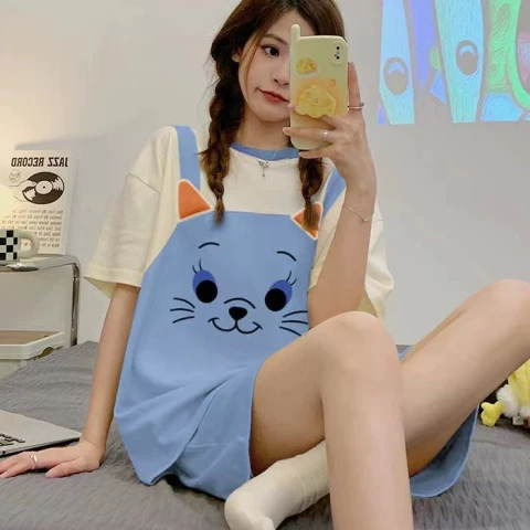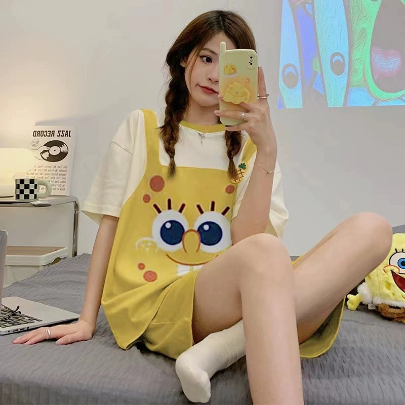 | nameOriginal | Sanrio pajamas girls summer short-sleeved cotton wearable cartoon Korean Internet celebrity style student home clothes set |