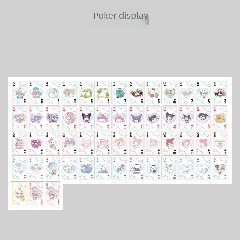 | nameOriginal | Sanrio playing cards 1 box of 54 single 57x 87mm animation peripheral board games toys chess cards |