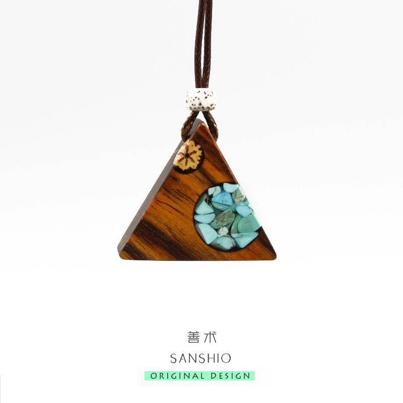 | nameOriginal | SANSHIO pure handmade original sandalwood pendant turquoise necklace literary style sweater chain T-shirt necklace |