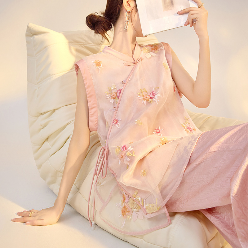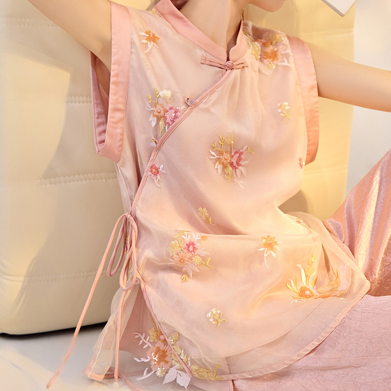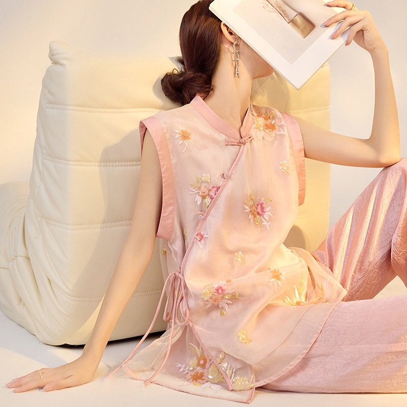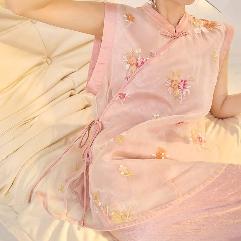| nameOriginal | Sanshun Silk New Style New Chinese Style Solid Color Flower Embroidered Sequin Vest Design Top M4007B |