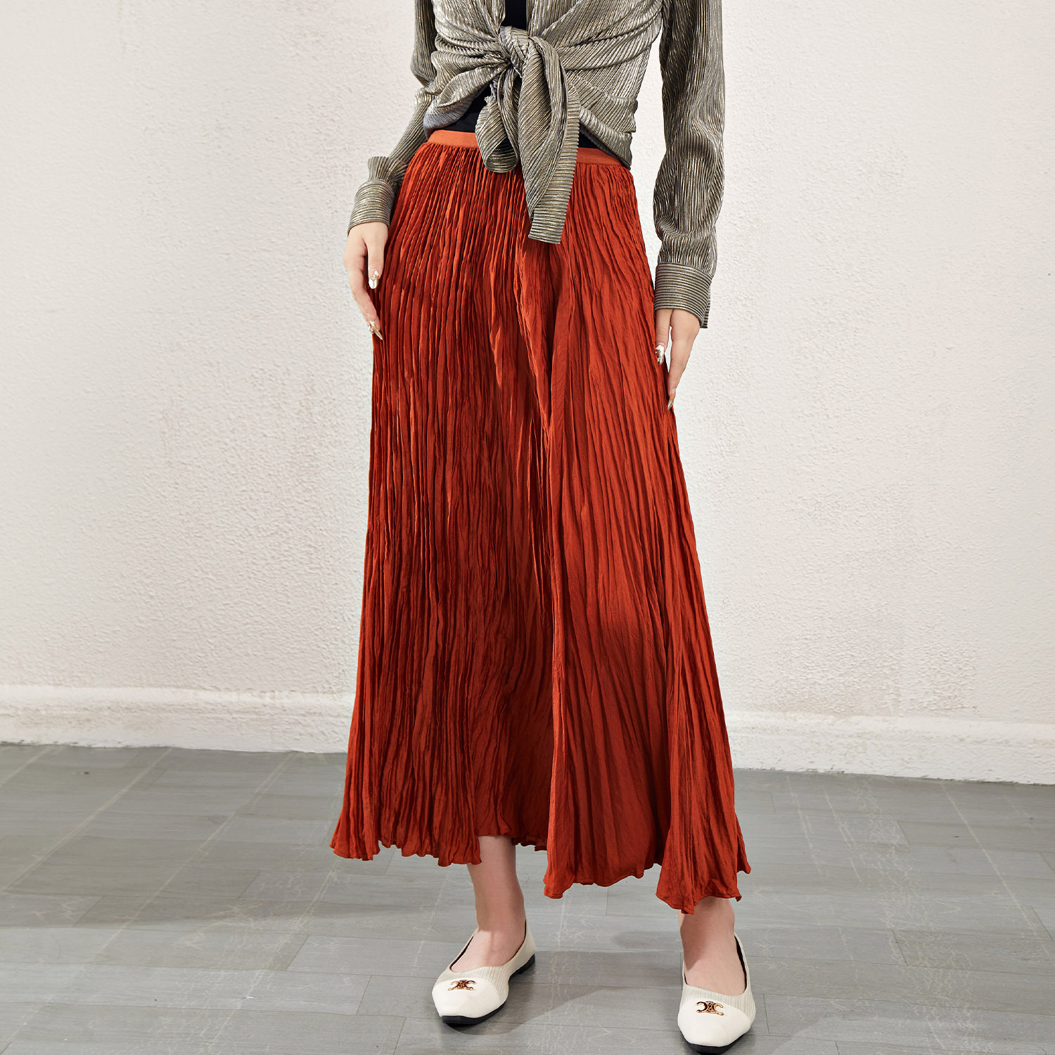 | nameOriginal | Sanzhai high waist versatile slimming smooth pleated skirt Acetate silk satin pleated large swing skirt |