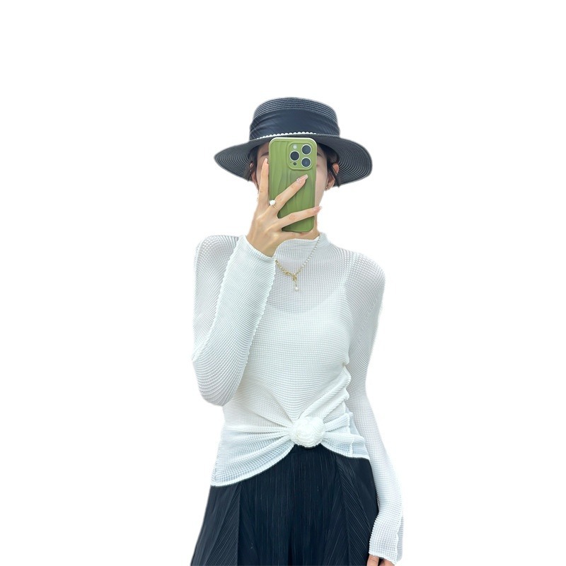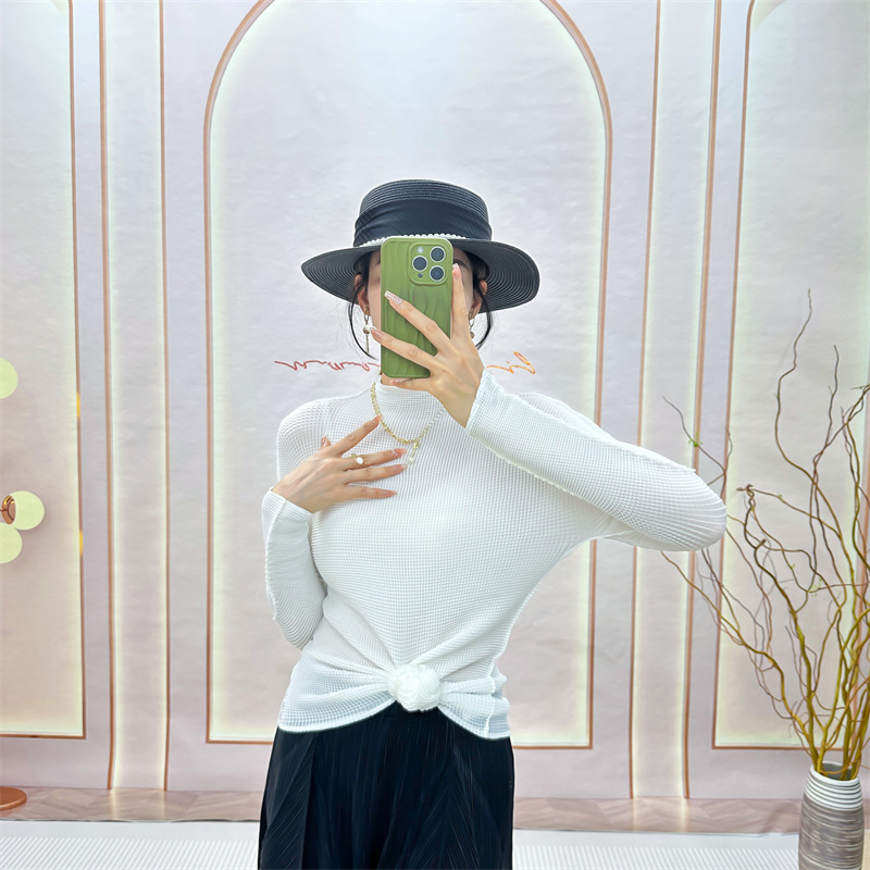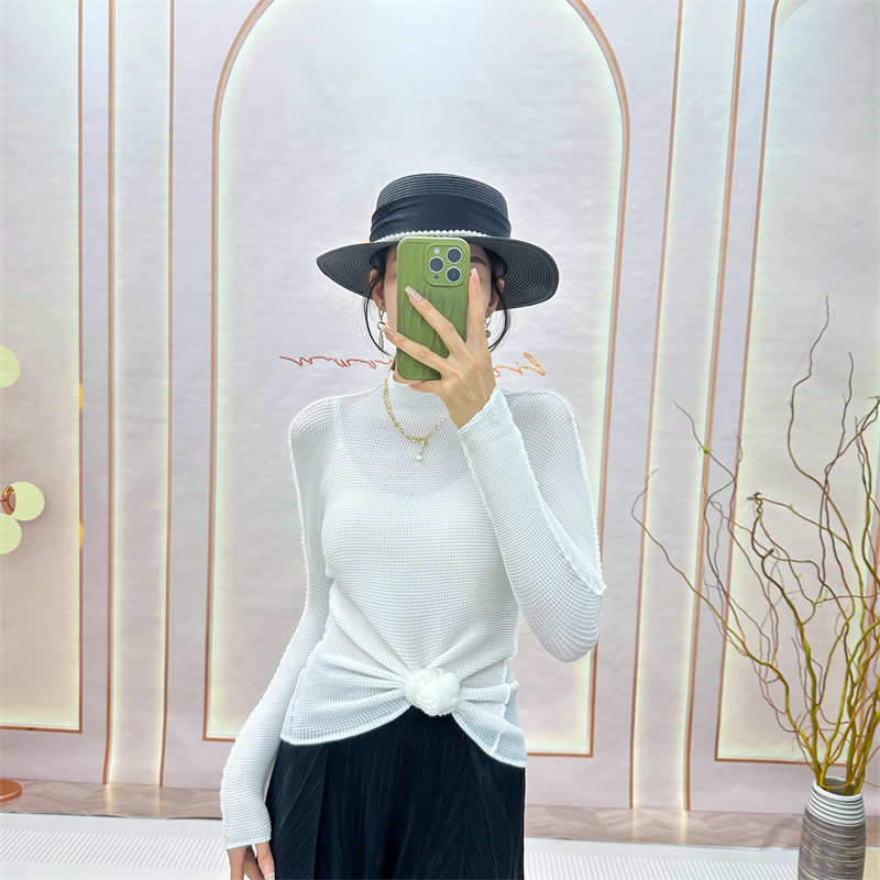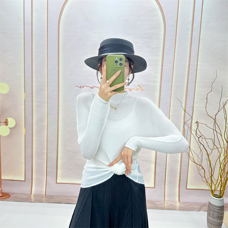 | nameOriginal | Sanzhai T-shirt for women 2024 spring new round neck long sleeve thin elegant commuter pleated top for women |