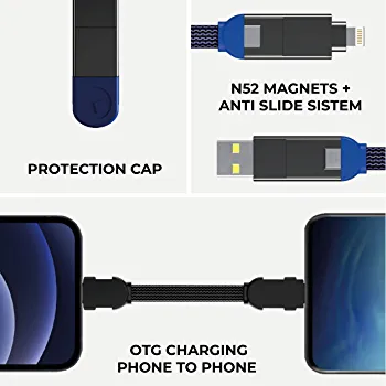 Sapphire Blue Portable Keychain Charger Cable with 6-in-1 Multi Charging and 100W Ultra-Fast Charging Power.