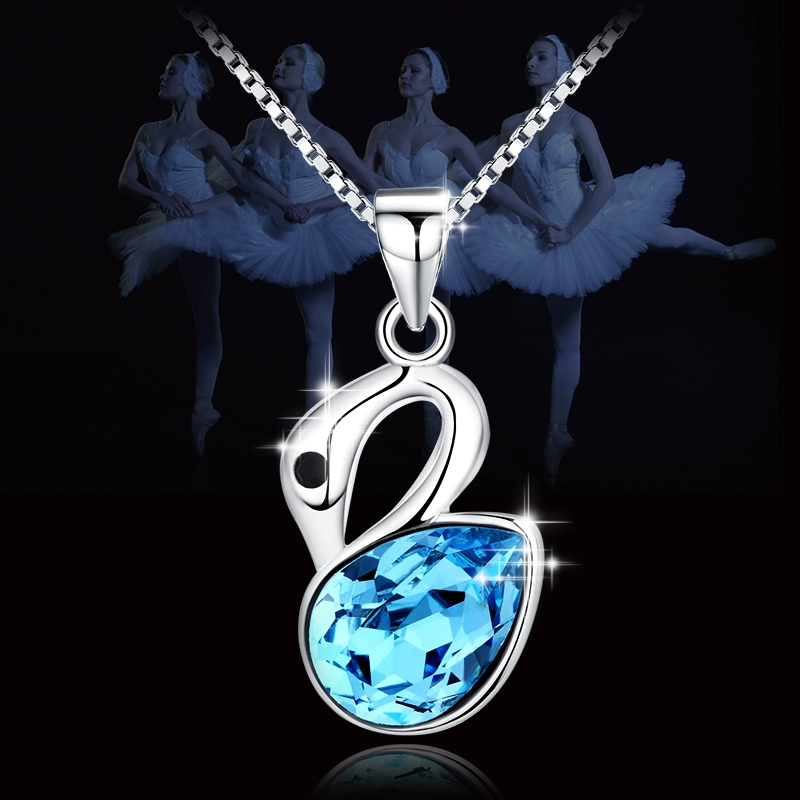 Sapphire crystal little swan necklace for women, high-end design, niche simple clavicle chain, best friend duo style, internet celebrity summer