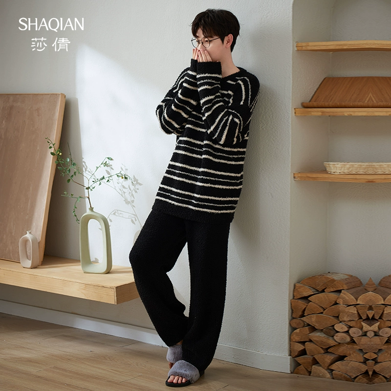 | nameOriginal | Saqian Half Velvet Thickened Striped Warm Couple Pajamas |