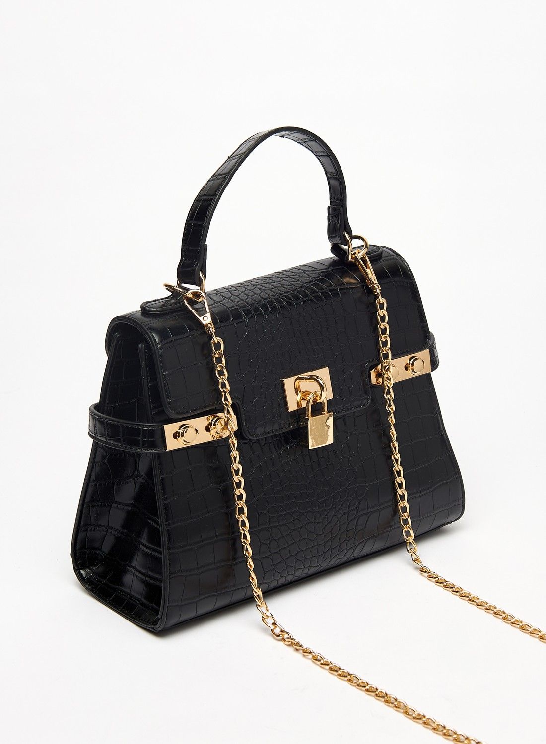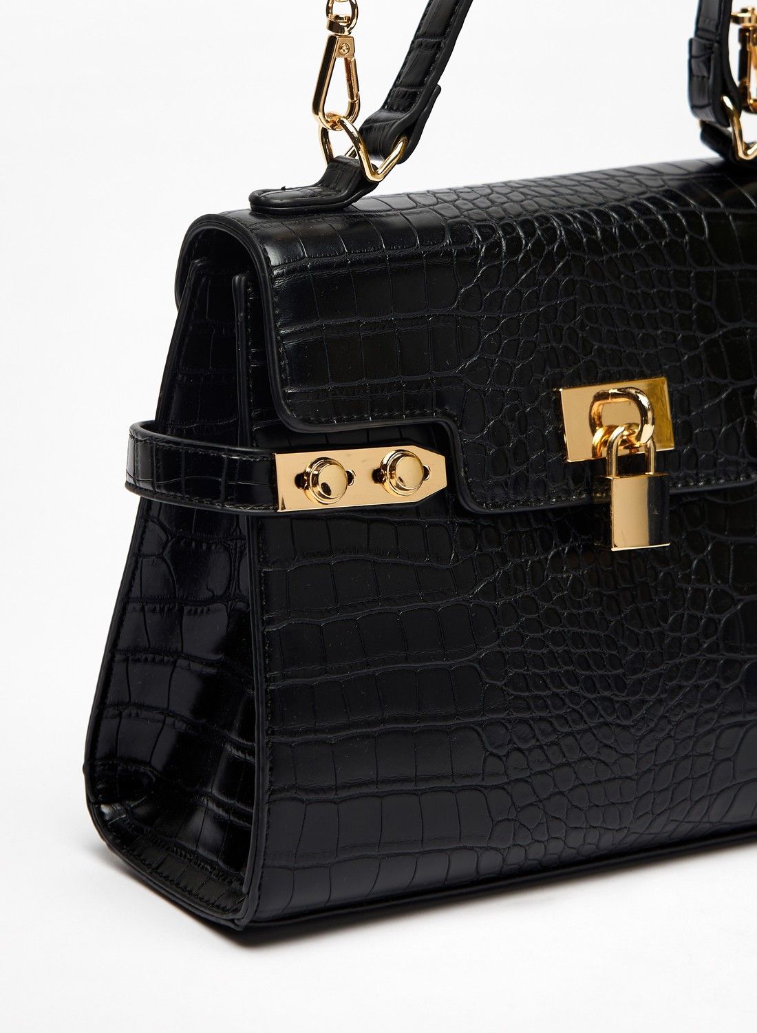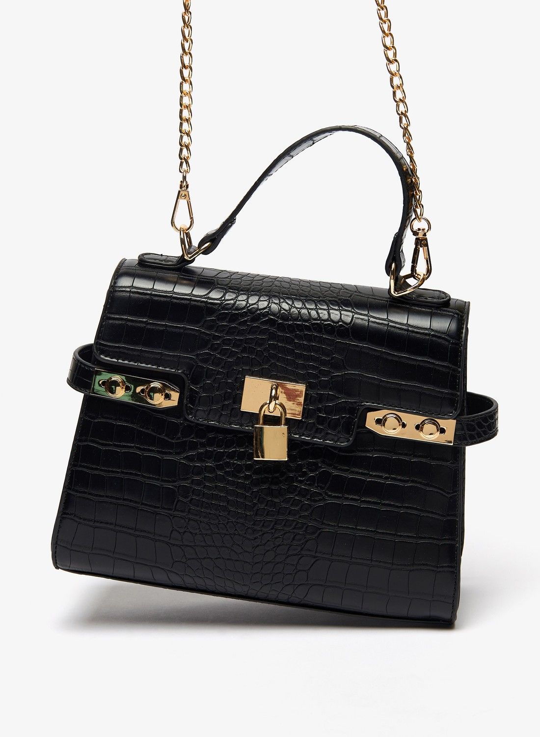 | nameOriginal | Animal Textured Satchel Bag with Flap Closure and Lock Accent |