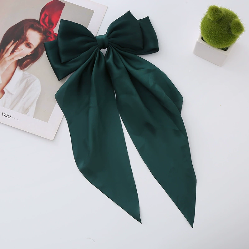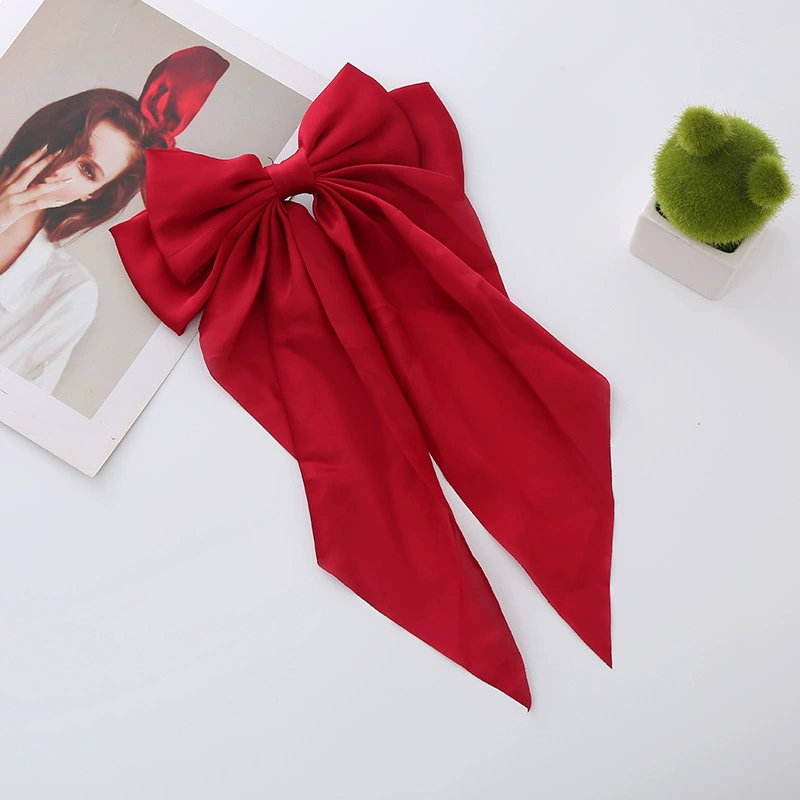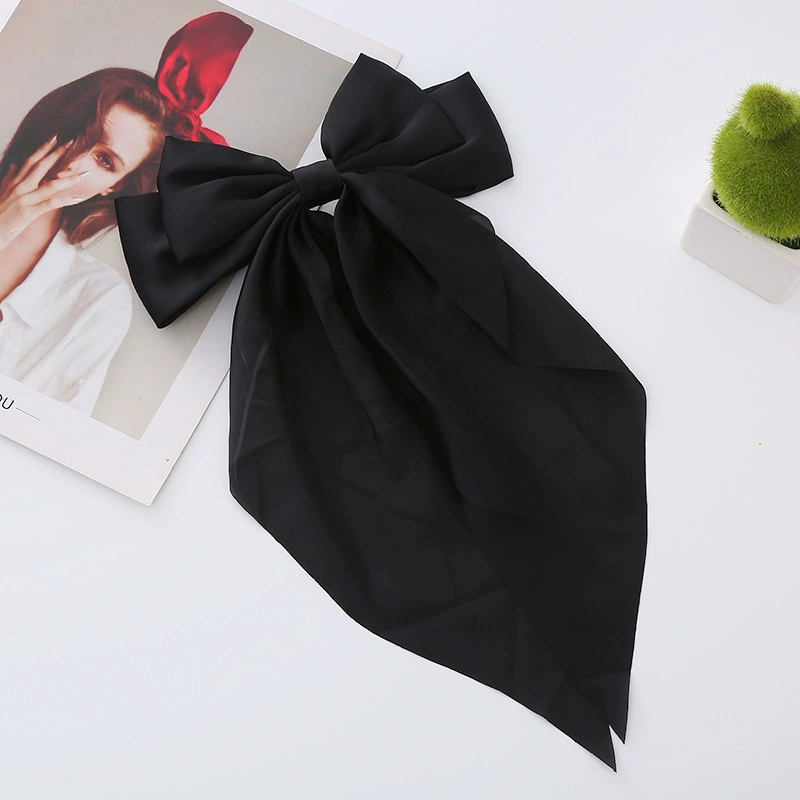 | nameOriginal | Satin big bow hairpin headdress new long ribbon hairpin high-end retro top clip women's French spring clip |