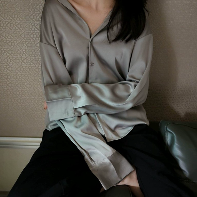 | nameOriginal | Satin chiffon shirt long sleeves loose draped acetate |