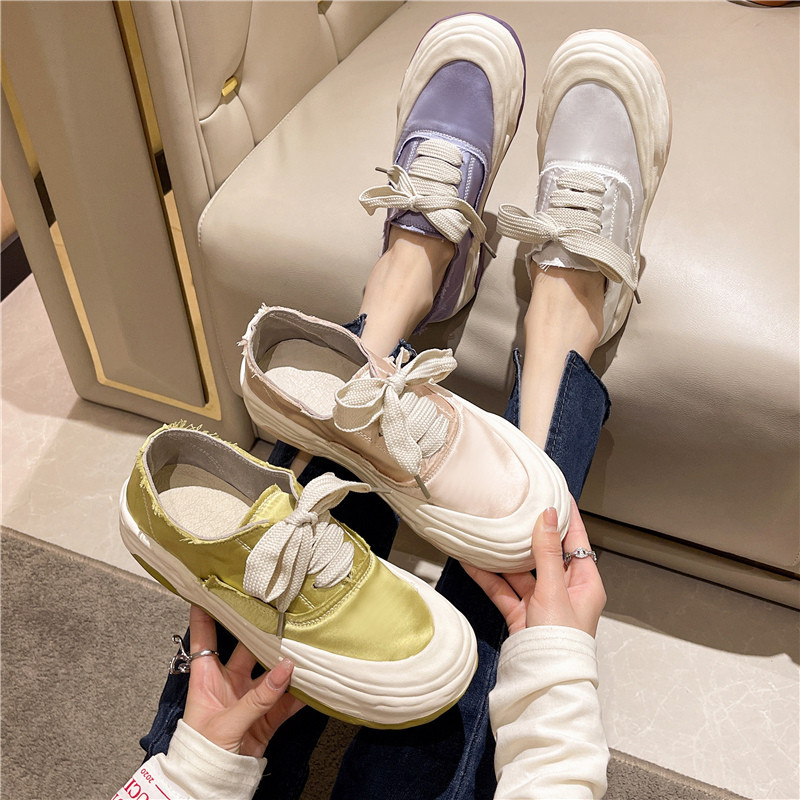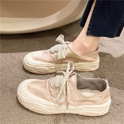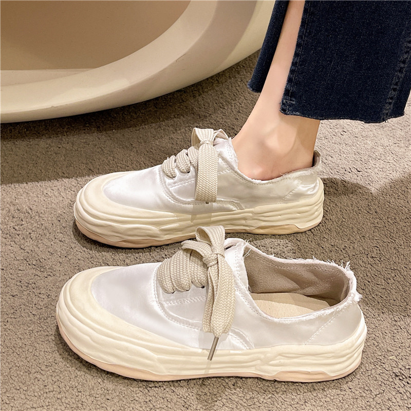 nameOriginal | Satin Dissolving Shoes Lace-up Canvas Shoes Women's Summer High-end Satin White Shoes with Skirt Sports Casual Sneakers |