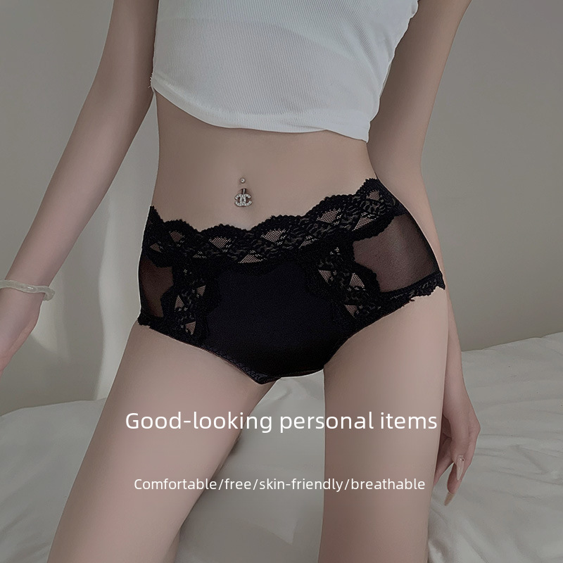 | nameOriginal | Satin Lace Panties Women's Ice Silk Breathable Mulberry Silk Crotch Mesh Wrapping Hip High Waist Briefs TikTok Explosions |