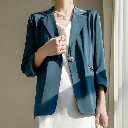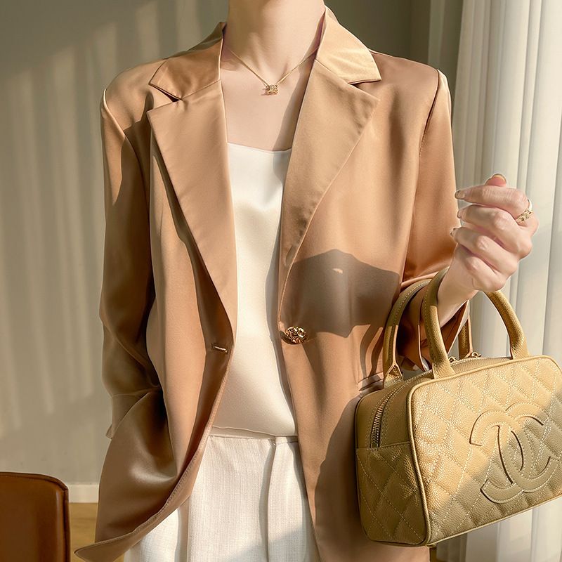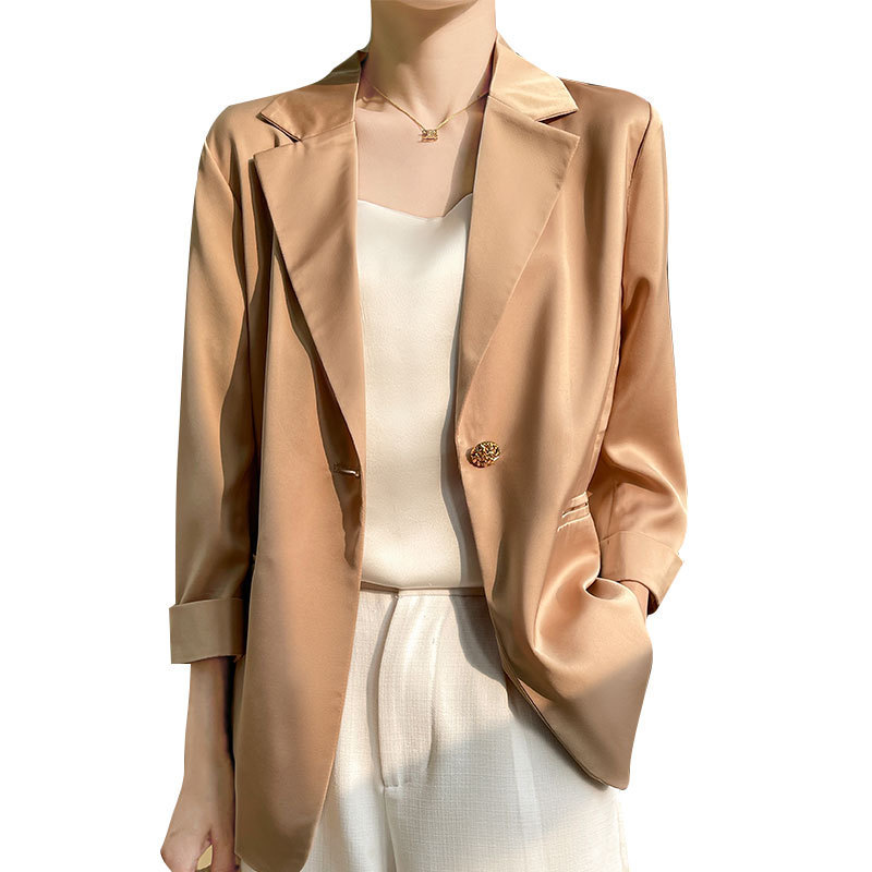 | nameOriginal | Satin Silk 2024 Spring and Summer Women's New Suit Collar Buckle Color Fashion Slim Look Suit Long Sleeve Top Jacket |
