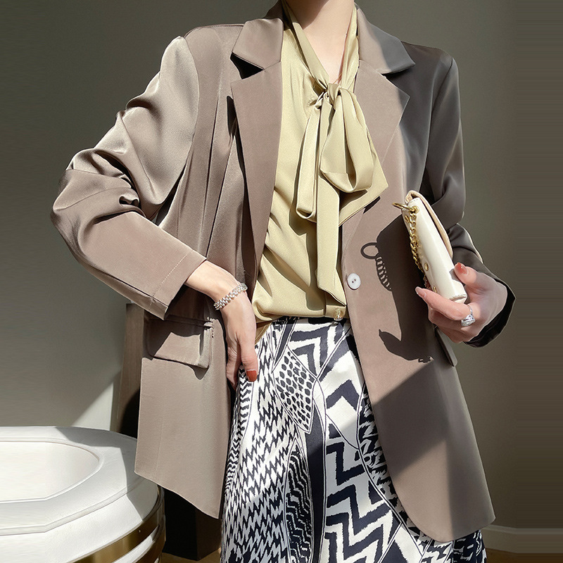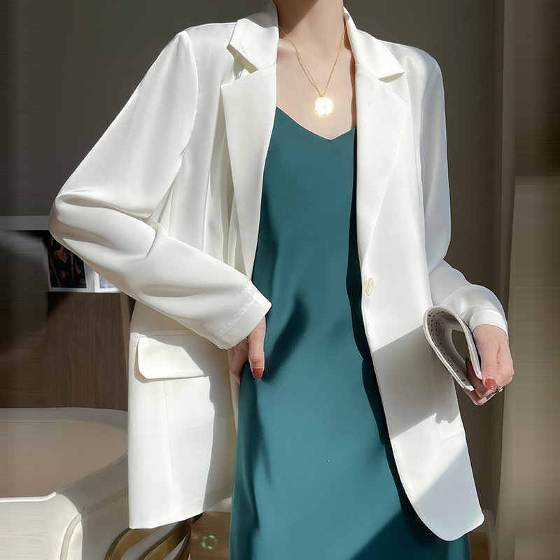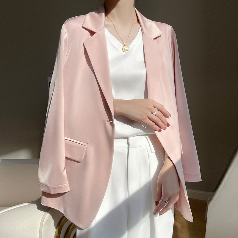 | nameOriginal | Satin Silk 2024 Spring/Summer Women's New Mid-length Design Suit Collar One-button Suit Jacket |