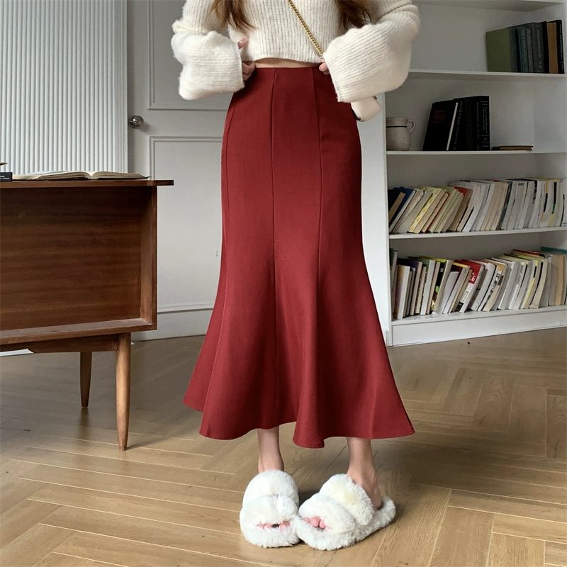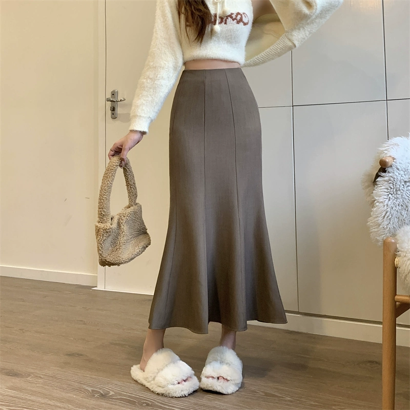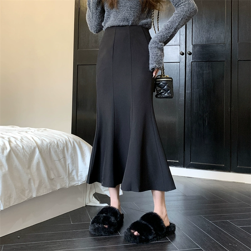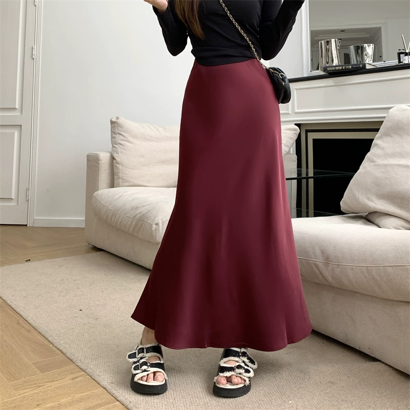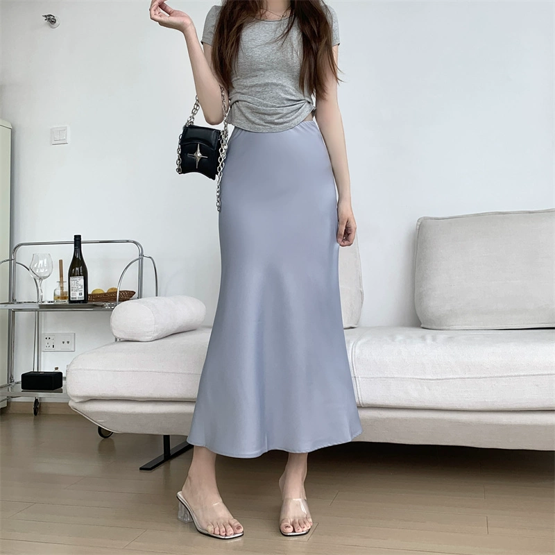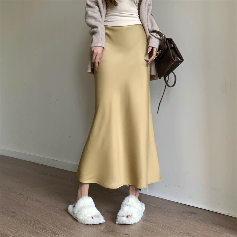 Satin slimming butt-hugging fishtail skirt for spring
