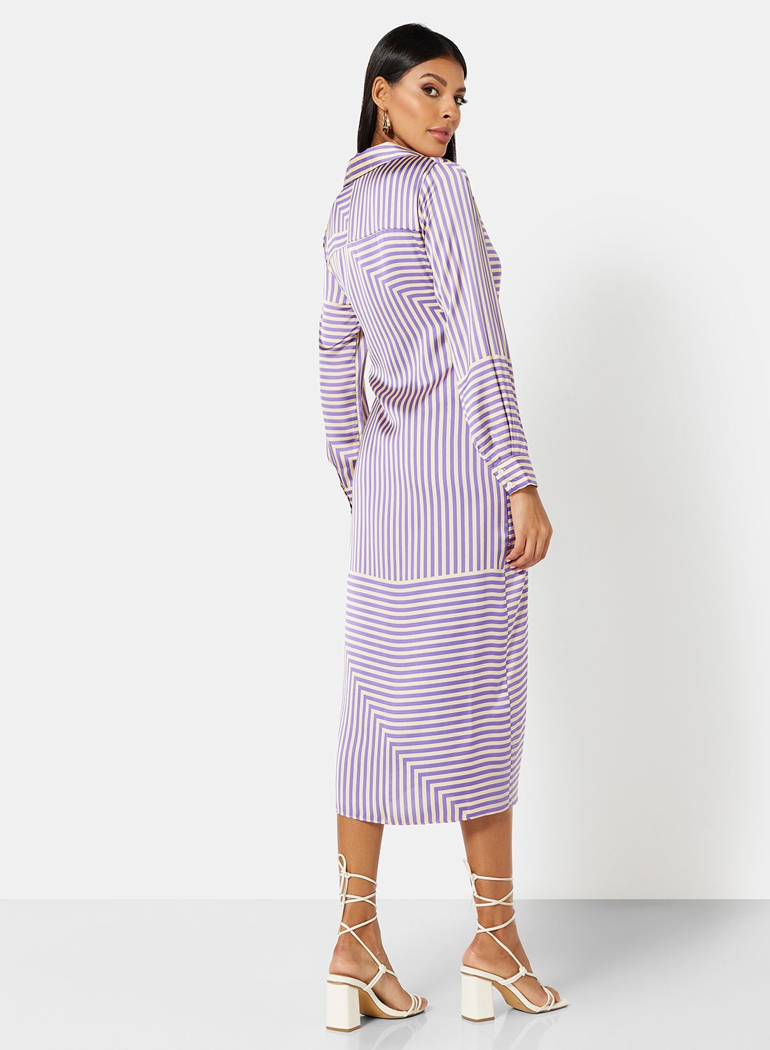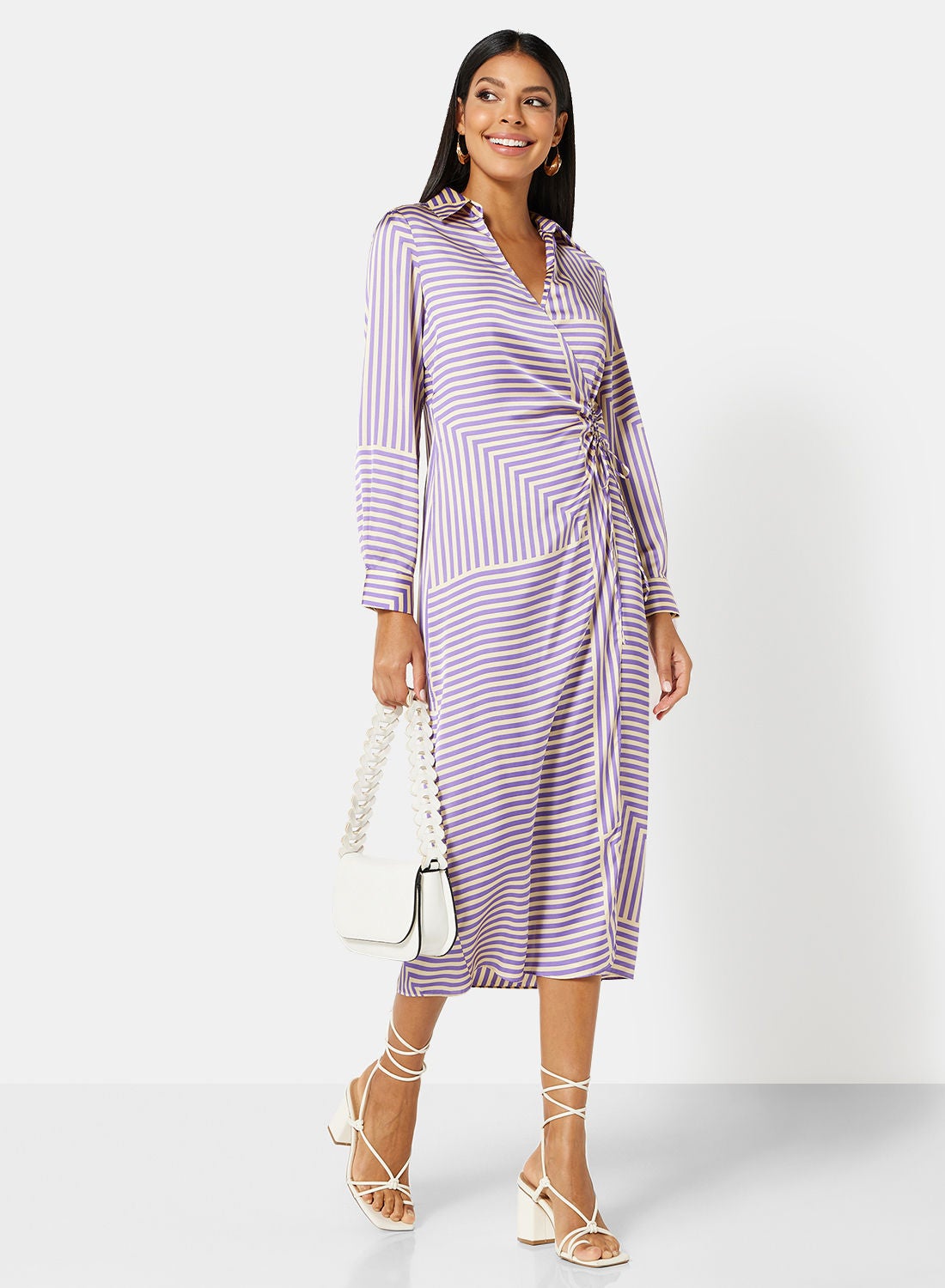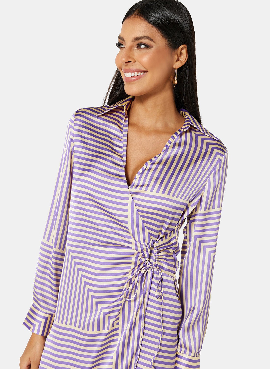 This product is a part of Mango’s Committed Collection and is made of soft polyester fabric with a satin finish. It features bold stripe prints all over and has a collared V-neck and long sleeves. The wrap style is completed with self-tie straps. To maintain its quality, it is recommended to follow the care label instructions while washing. The model in the picture is approximately 175 cm tall and is wearing size S.