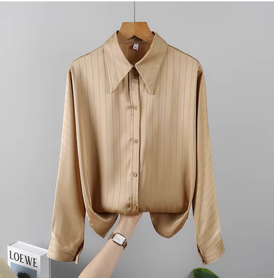 | nameOriginal | Satin striped off-shoulder drape layered with acetate |