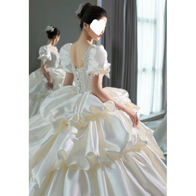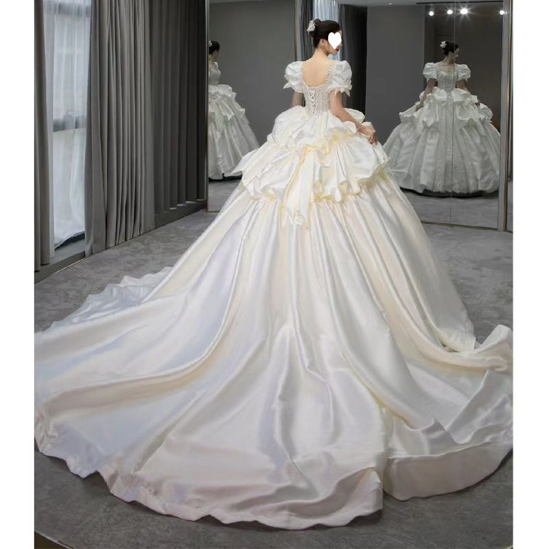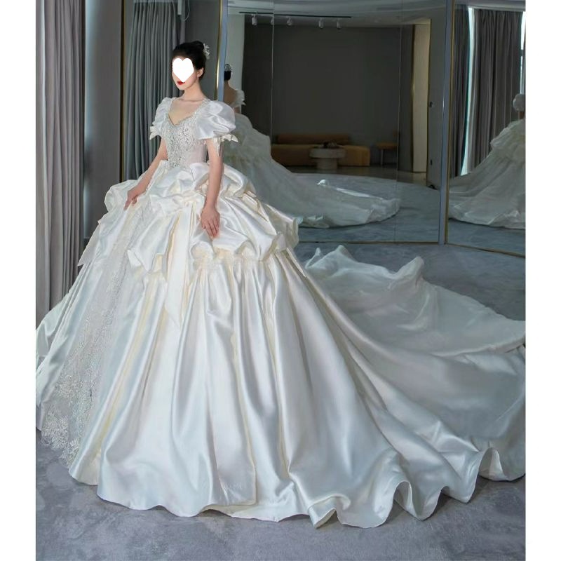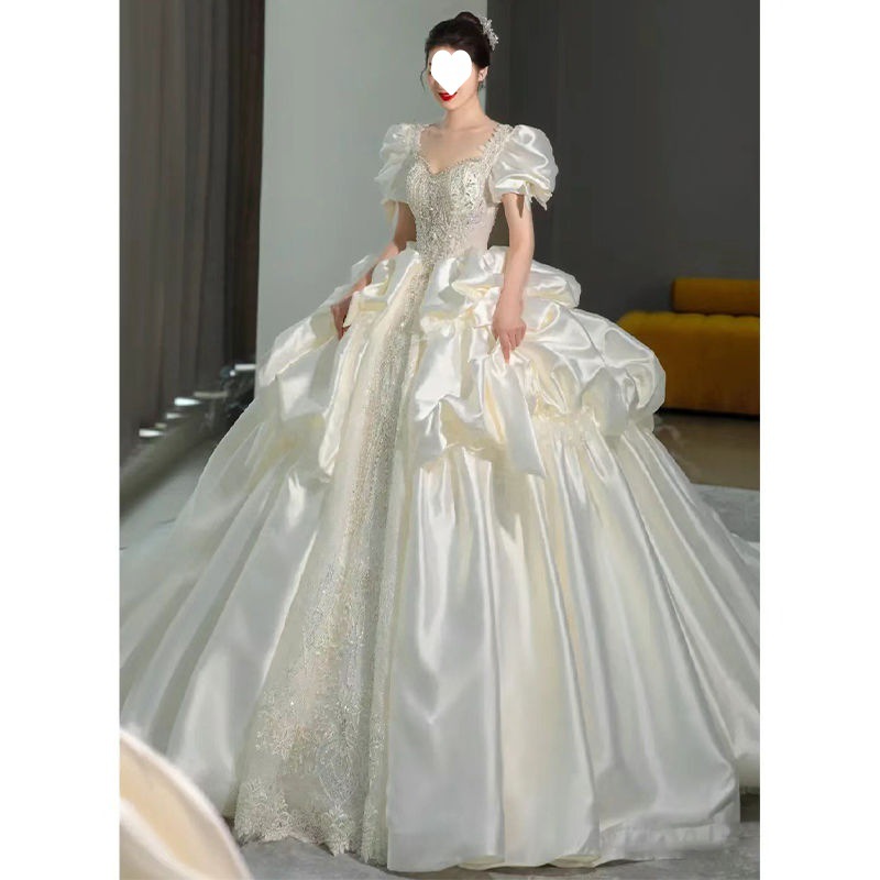 | nameOriginal | Satin Wedding Dress 2024 New Bridal French Main Wedding Dress Retro Elegant Heavy Industry Small Large Trailing Women's Hair |